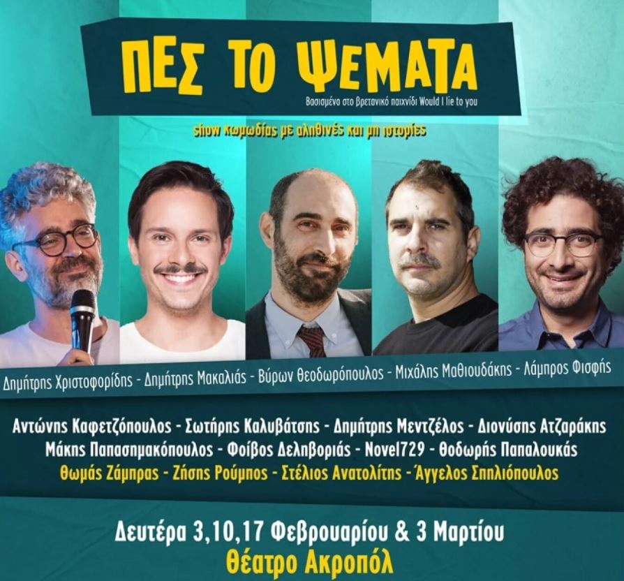Διχασμένη εμφανίζεται η ελληνική σκηνή stand up comedy, παρά το γεγονός πως έχει τη φήμη της προοδευτικής και συνεκτικής που διατηρεί. Αιτία του διχασμού η αφίσα μιας κωμικής παράστασης με 17 άνδρες κωμικούς και ούτε μια γυναίκα. Πρόκειται για την παράσταση «Πες το Ψέματα» που βασίζεται στο δημοφιλές βρετανικό format «Would I lie to you». Η παράσταση είναι προγραμματισμένη για τον Φεβρουάριο στο Θέατρο Ακροπόλ και σ’ αυτή συμμετέχουν οι: