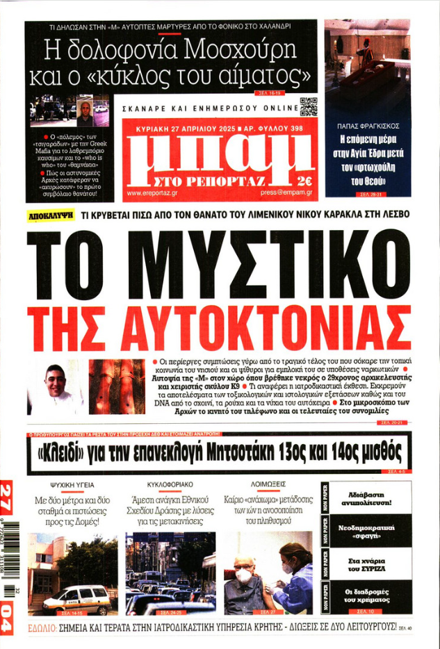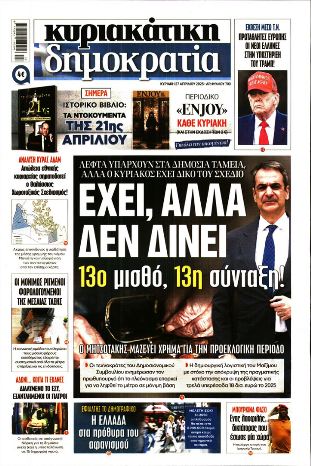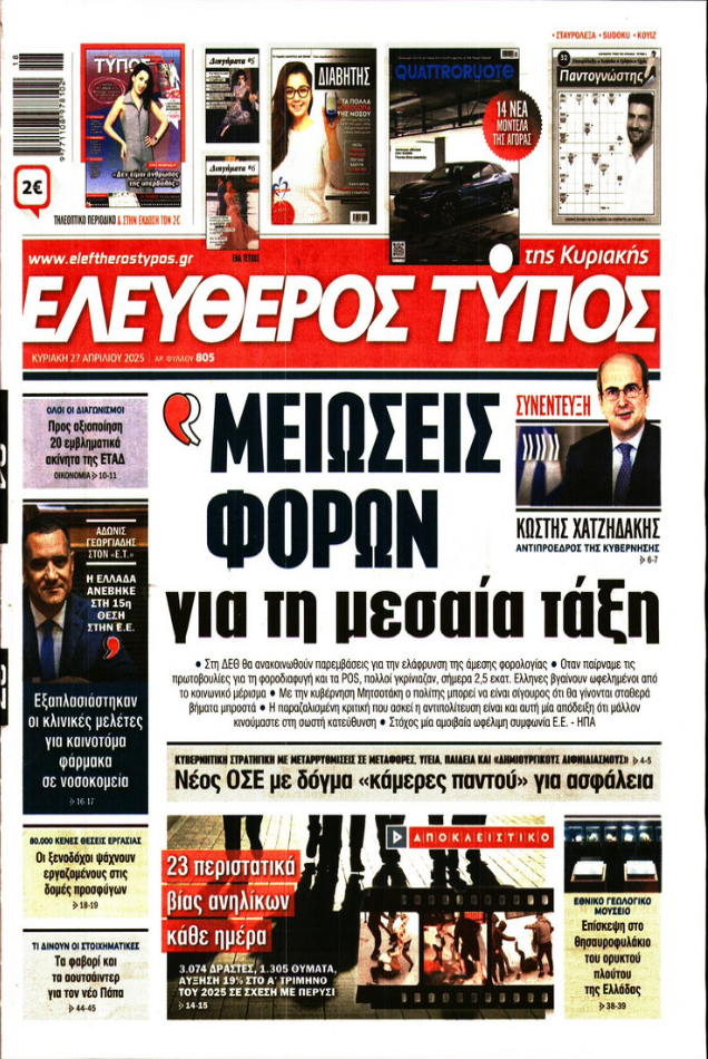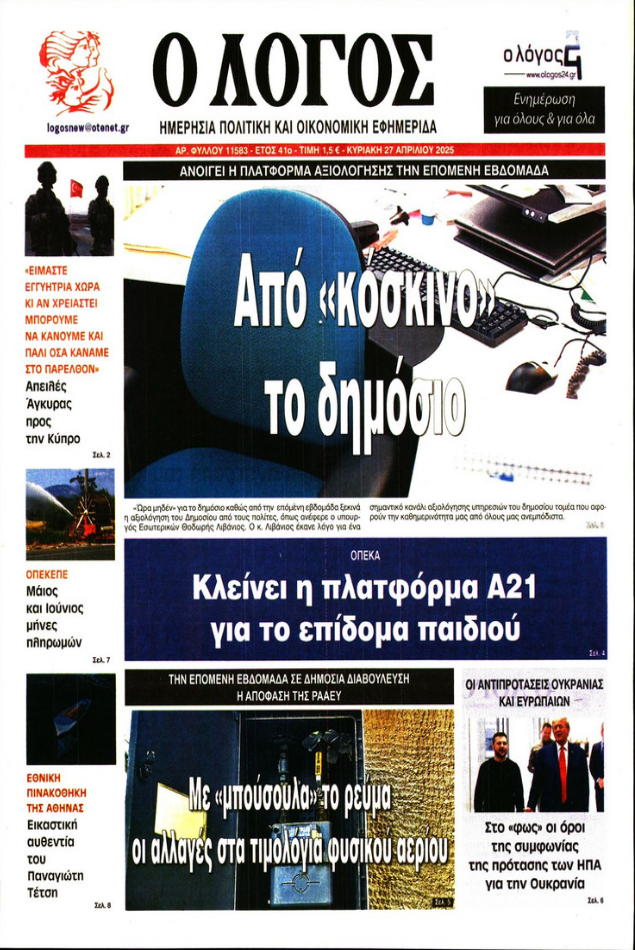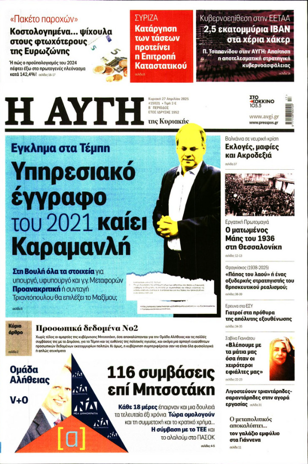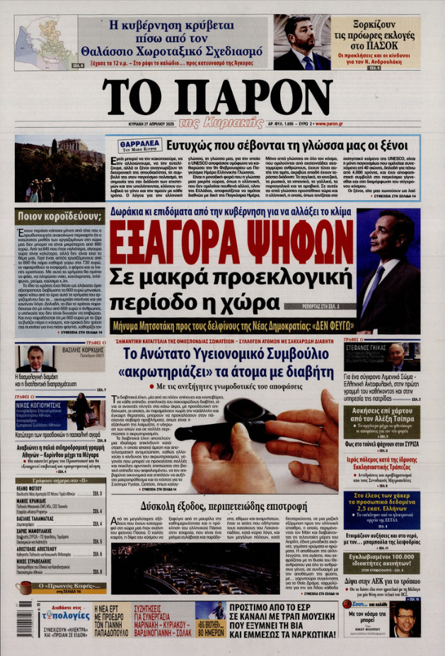 Το νέο νομοσχέδιο για τον ΟΣΕ, ο θάνατος του Πάπα Φραγκίσκου και οι ανακοινώσεις της κυβέρνησης για τα νέα μέτρα στήριξης ενοικιαστών, συνταξιούχων και ευάλωτων πολιτών ξεχωρίζουν στα πρωτοσέλιδα των κυριακάτικων εφημερίδων.