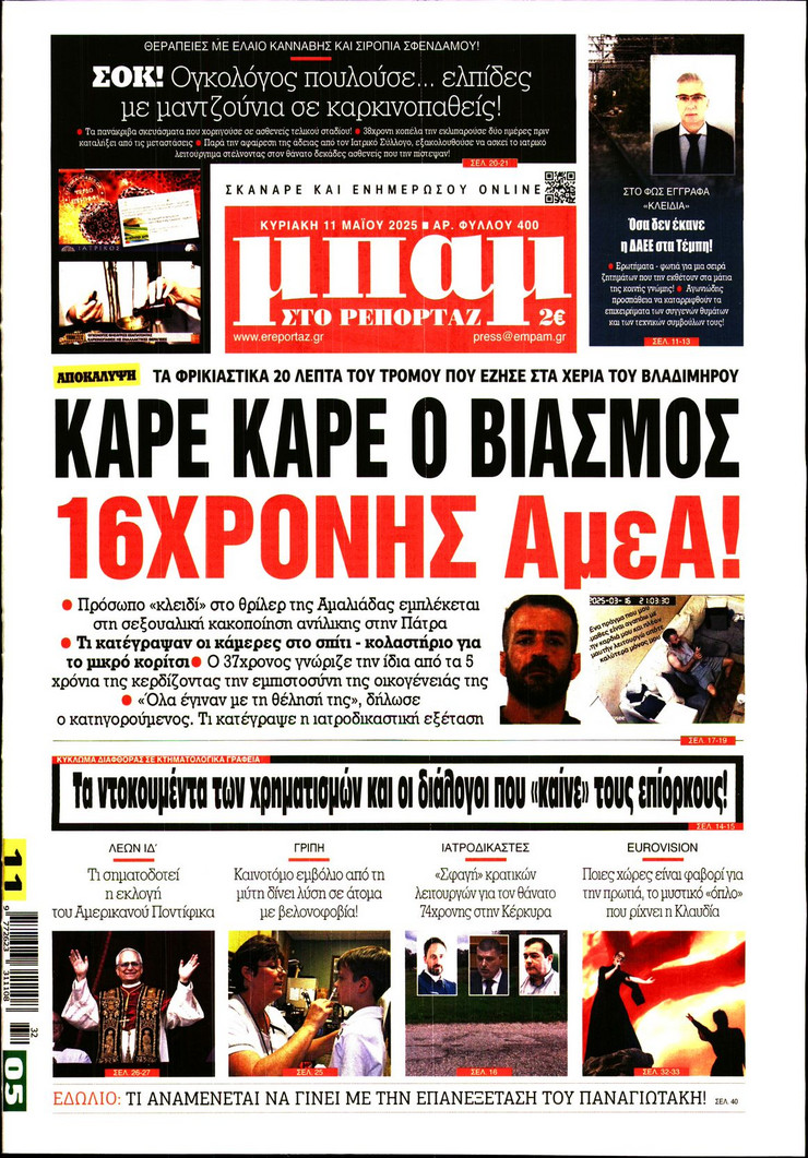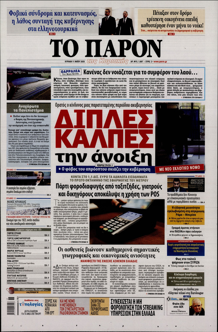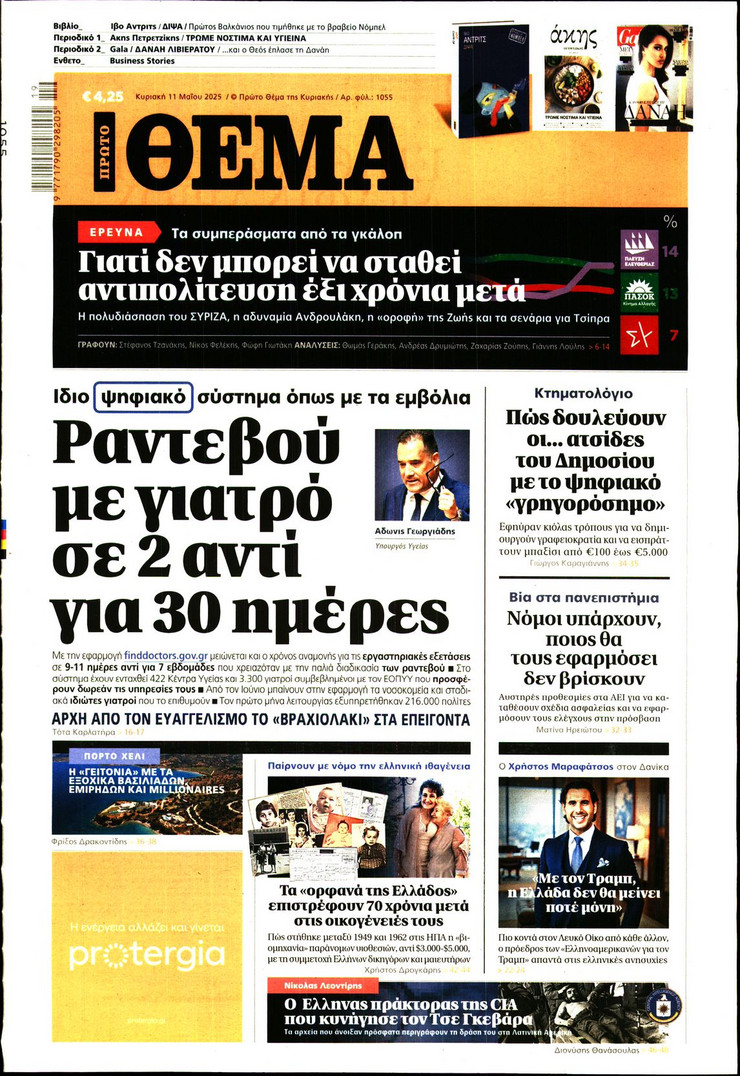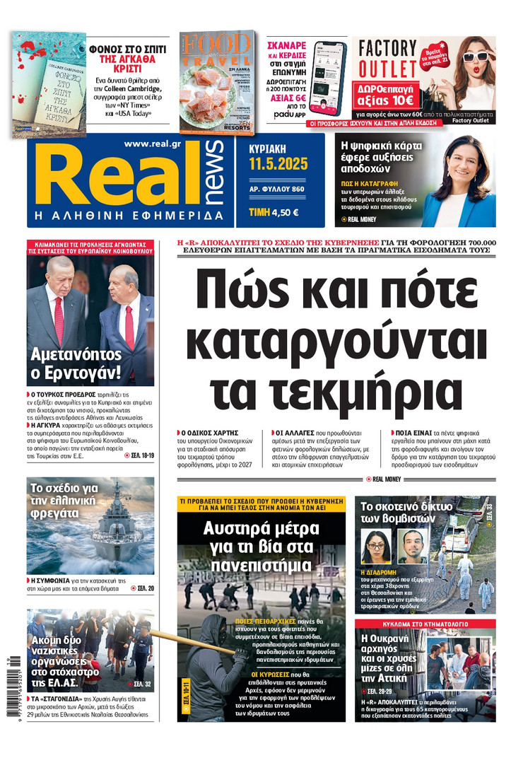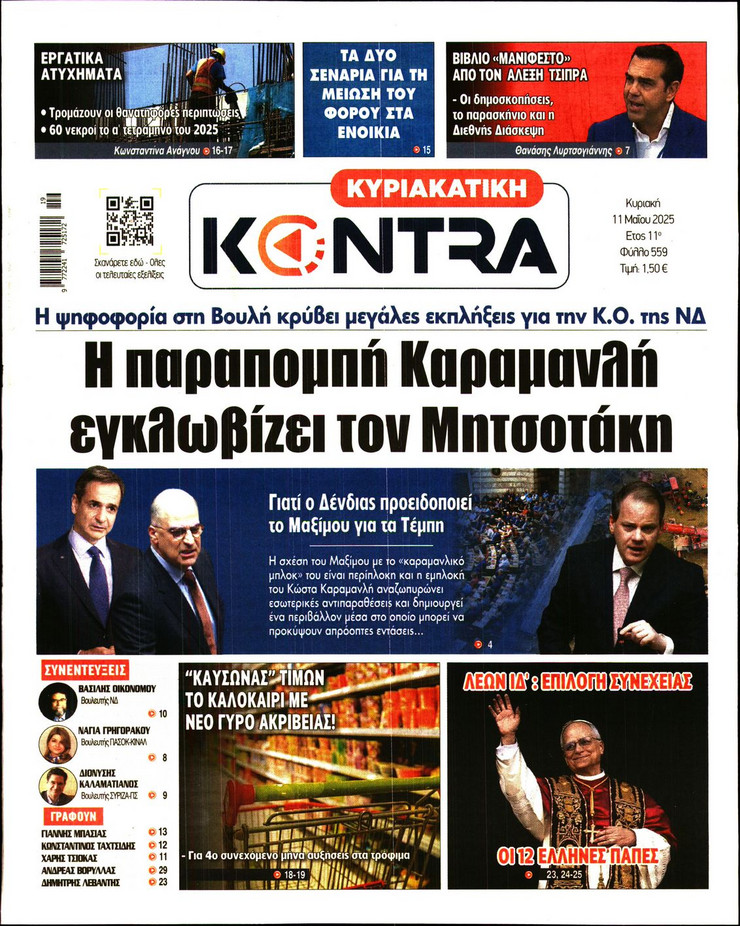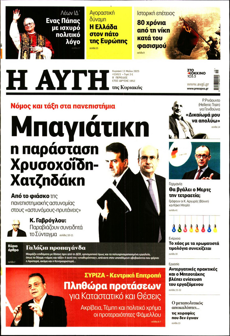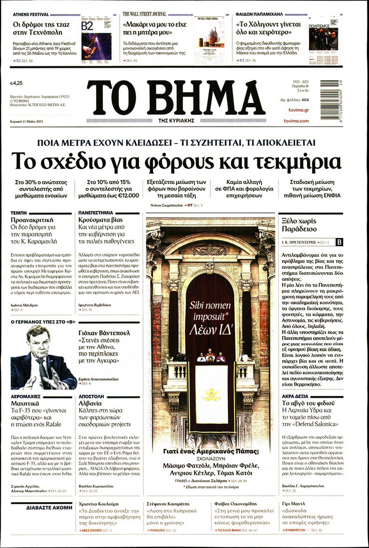 Το σχέδιο της κυβέρνησης για αυστηρότερο δημόσιο, το νέο ψηφιακό σύστημα που θα μειώσει το χρόο αναμονής για ραντεβού με γιατρό, ο απόηχος της εκλογής για τον νέο Αμερικανό Ποντίφικα και οι αλλαγές που προωθούνται από το υπουργείο Οικονομικών για την φορολογική ελάφρυνση των επαγγελματιών και των ατομικών επιχειρήσεων ξεχωρίζουν στα πρωτοσέλιδα των κυριακάτικων εφημερίδων.