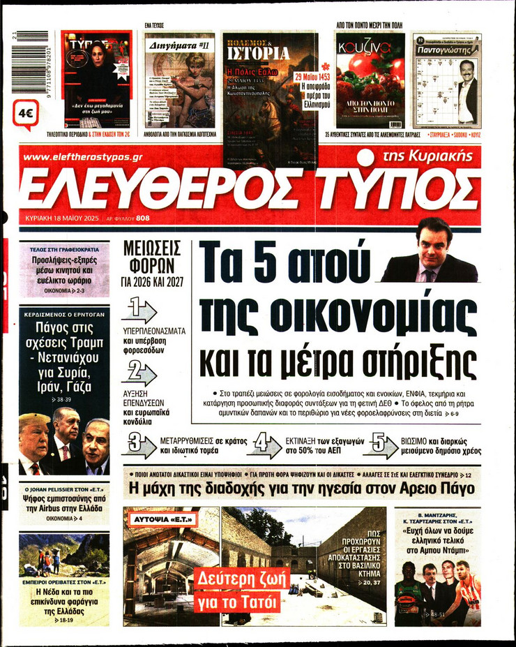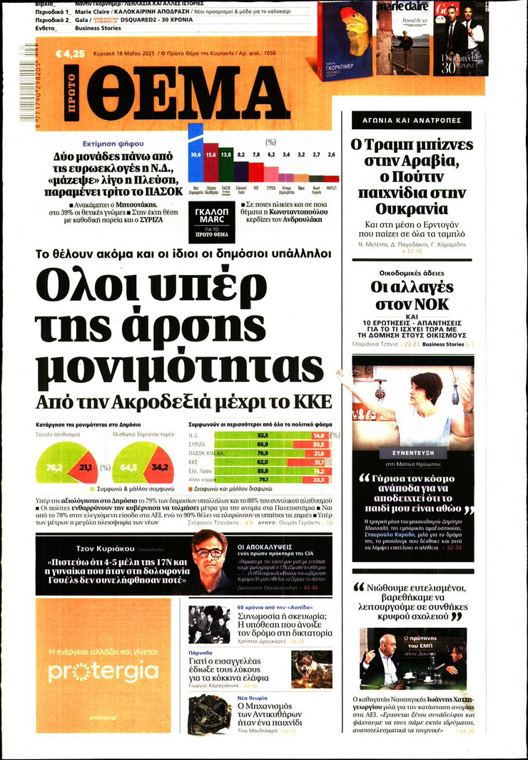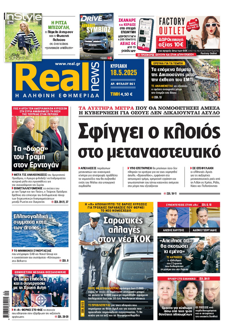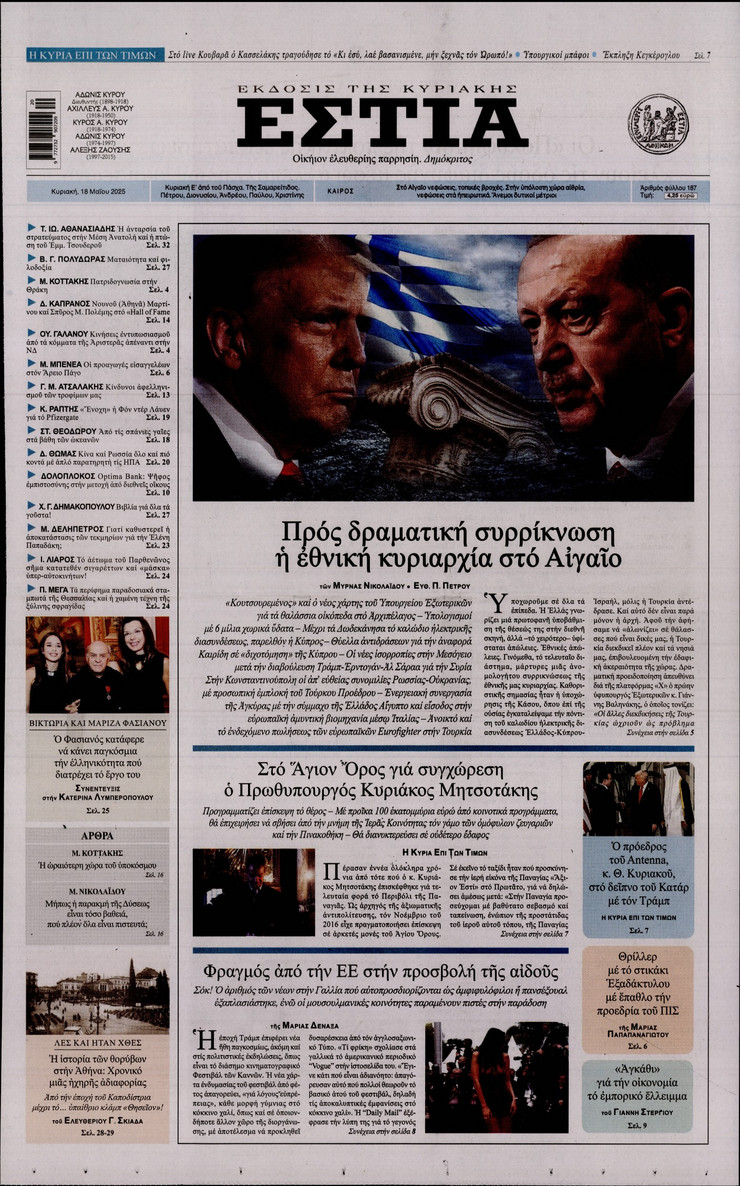 Τα αυστηρά μέτρα που θα νομοθετήσει άμεσα η κυβέρνηση για όσους δεν δικαιούνται άσυλο, η μεγάλη δημοσκόπηση που δίνει στο κυβερνών κόμμα ποσοστό άνω των ευρωεκλογών, οι σαρωτικές αλλαγές στον νέο ΚΟΚ και το «δώρο» του Τραμπ στον Ερντογάν με την άρση των αμερικανικών κυρώσεων στη Συρία ξεχωρίζουν στα πρωτοσέλιδα των κυριακάτικων εφημερίδων.