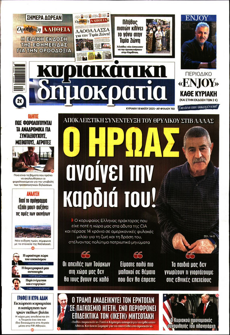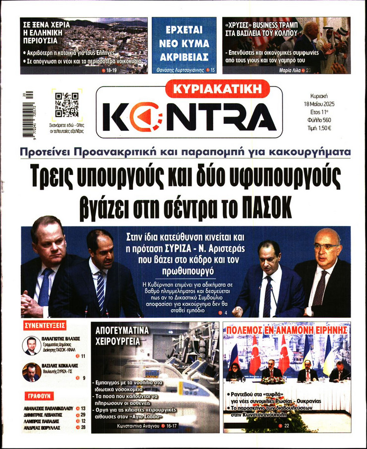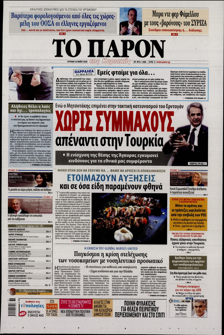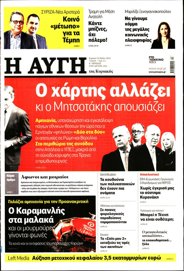 Τα αυστηρά μέτρα που θα νομοθετήσει άμεσα η κυβέρνηση για όσους δεν δικαιούνται άσυλο, η μεγάλη δημοσκόπηση που δίνει στο κυβερνών κόμμα ποσοστό άνω των ευρωεκλογών, οι σαρωτικές αλλαγές στον νέο ΚΟΚ και το «δώρο» του Τραμπ στον Ερντογάν με την άρση των αμερικανικών κυρώσεων στη Συρία ξεχωρίζουν στα πρωτοσέλιδα των κυριακάτικων εφημερίδων.