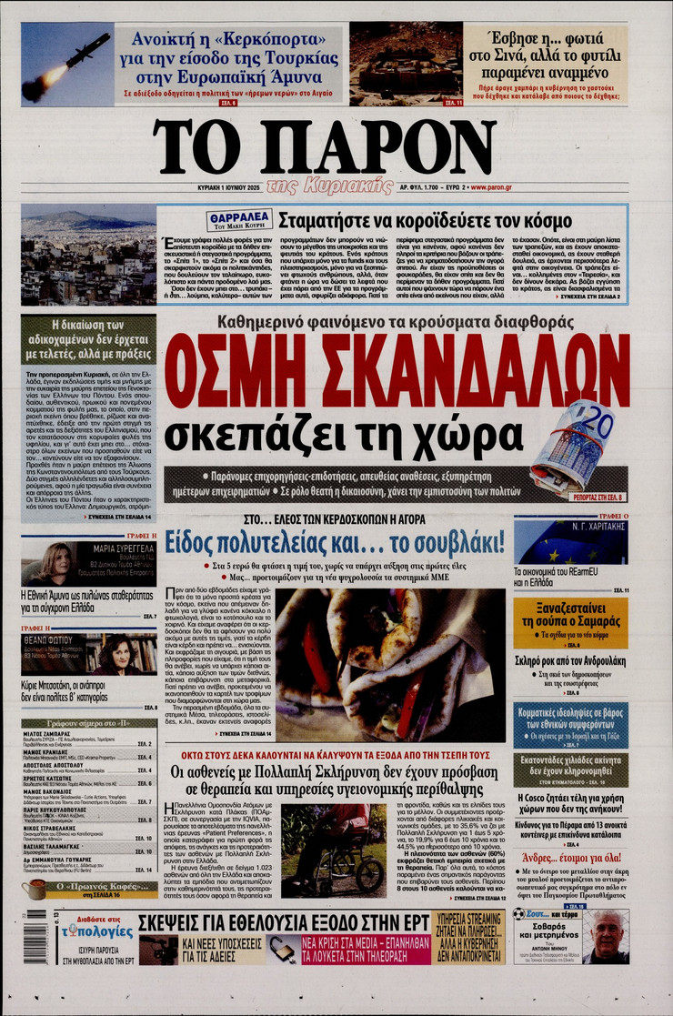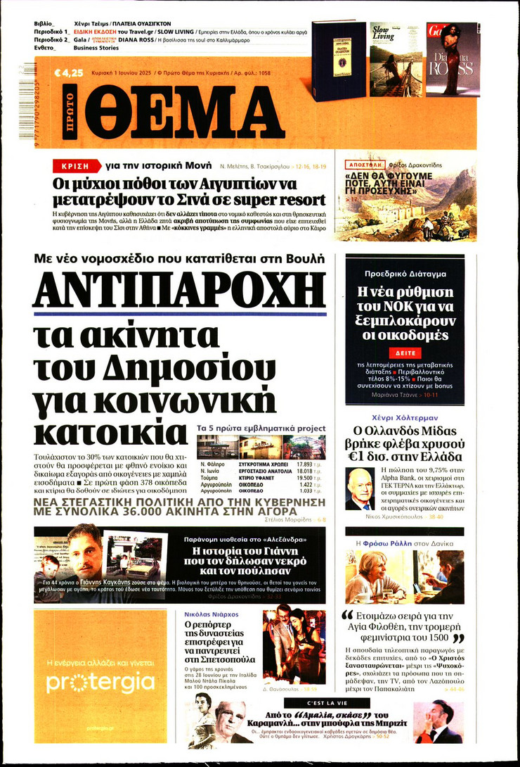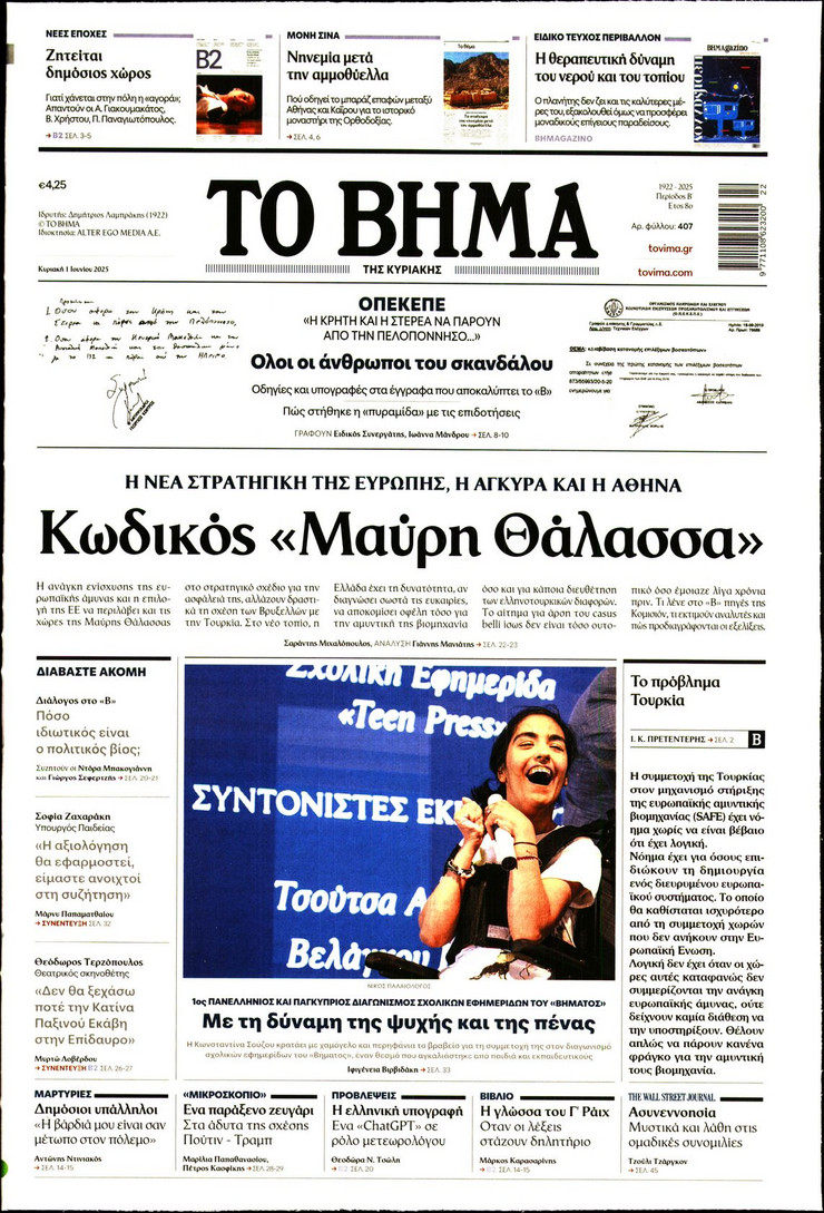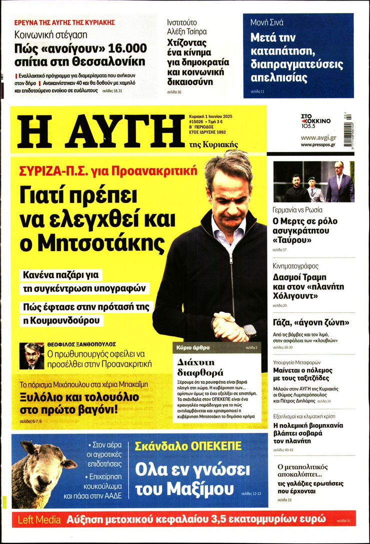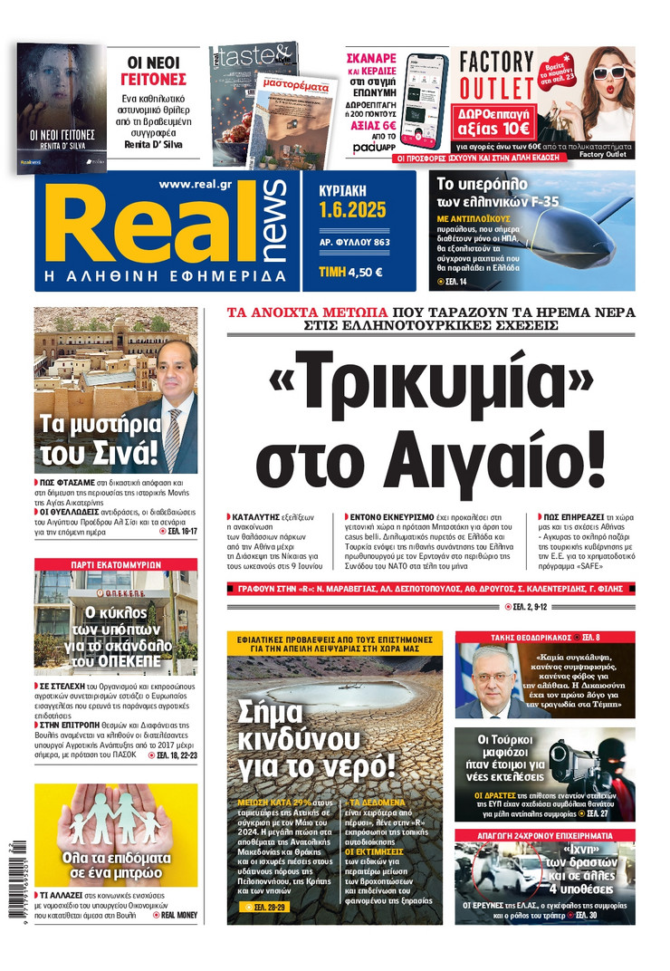 Ο έντονος εκνευρισμός που επικρατεί στην Τουρκία μετά την πρόταση Μητσοτάκη για άρση του casus belli και ο διπλωματικός πυρετός που επικρατεί ενόψει και της πιθανής συνάντησης του Έλληνα πρωθυπουργού με τον Ρετζέπ Ταγίπ Ερντογάν στη Σύνοδο του ΝΑΤΟ στα τέλη Ιουνίου, το σχέδιο της κυβέρνησης για κοινωνική κατοικία ρίχνοντας 36.000 ακίνητα του Δημοσίου στην αγορά και η ανάγκη ενίσχυσης της ευρωπαϊκής άμυνας με την επιλογή της ΕΕ να συμπεριλάβει τις χώρες της Μαύρης Θάλασσας στο στρατηγικό σχέδιο για την ασφάλειά της γεγονός που αλλάζει δραστικά τη σχέση των Βρυξελλών με την Τουρκία ξεχωρίζουν στα πρωτοσέλιδα των κυριακάτικων εφημερίδων.