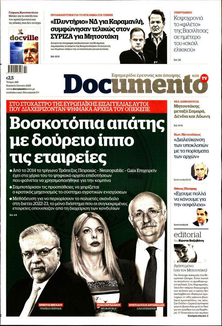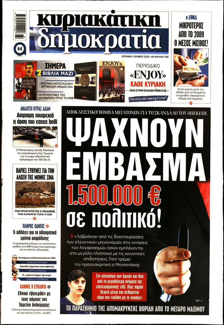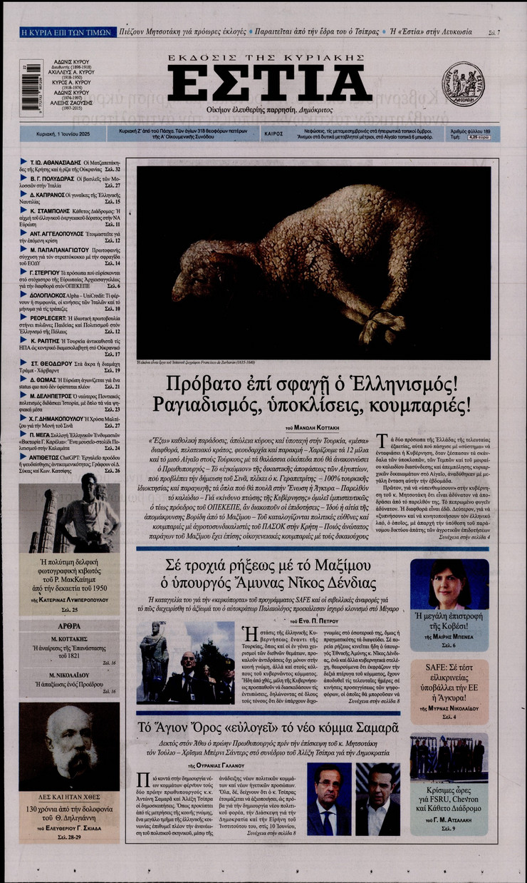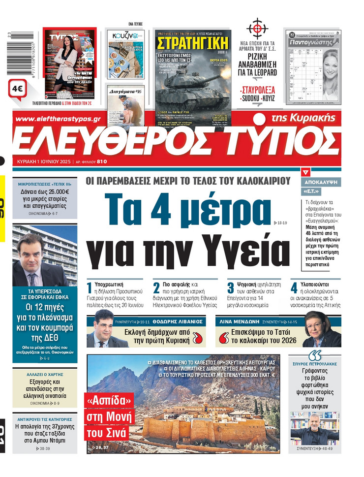 Ο έντονος εκνευρισμός που επικρατεί στην Τουρκία μετά την πρόταση Μητσοτάκη για άρση του casus belli και ο διπλωματικός πυρετός που επικρατεί ενόψει και της πιθανής συνάντησης του Έλληνα πρωθυπουργού με τον Ρετζέπ Ταγίπ Ερντογάν στη Σύνοδο του ΝΑΤΟ στα τέλη Ιουνίου, το σχέδιο της κυβέρνησης για κοινωνική κατοικία ρίχνοντας 36.000 ακίνητα του Δημοσίου στην αγορά και η ανάγκη ενίσχυσης της ευρωπαϊκής άμυνας με την επιλογή της ΕΕ να συμπεριλάβει τις χώρες της Μαύρης Θάλασσας στο στρατηγικό σχέδιο για την ασφάλειά της γεγονός που αλλάζει δραστικά τη σχέση των Βρυξελλών με την Τουρκία ξεχωρίζουν στα πρωτοσέλιδα των κυριακάτικων εφημερίδων.