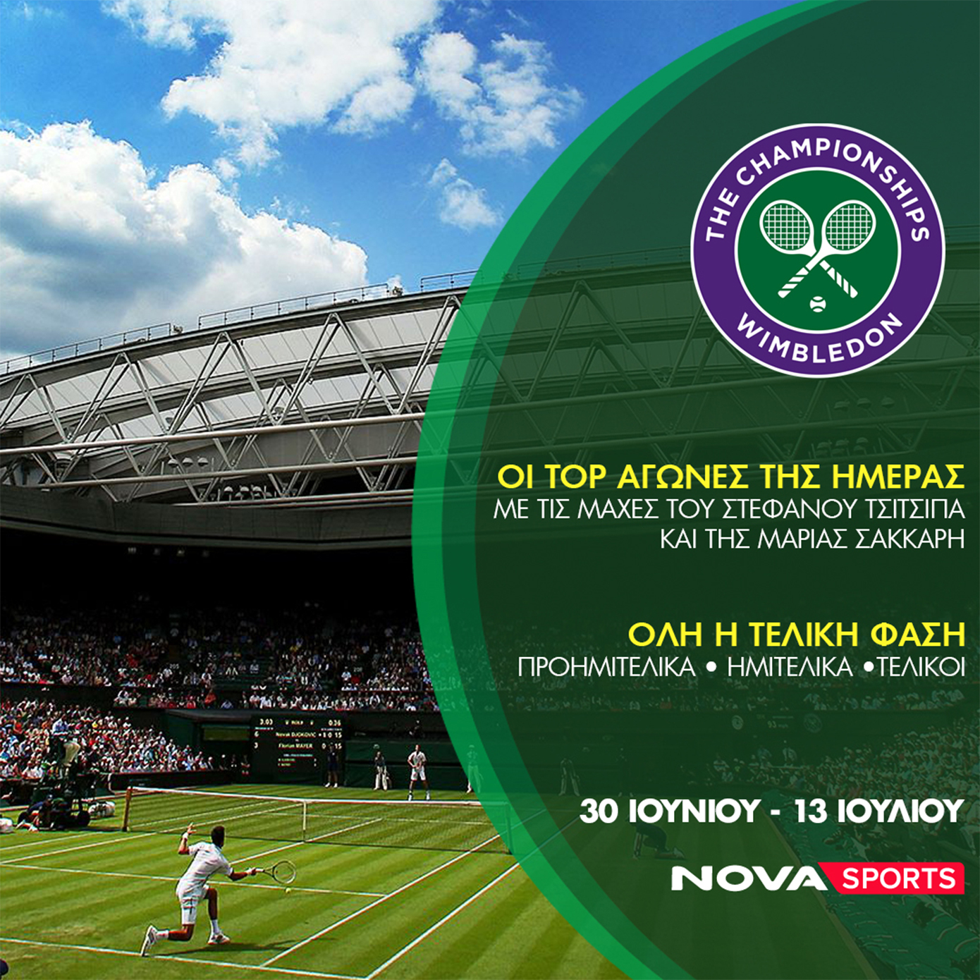- 15:30 Τουρνουά Τένις Wimbledon – 1η μέρα Novasports Prime