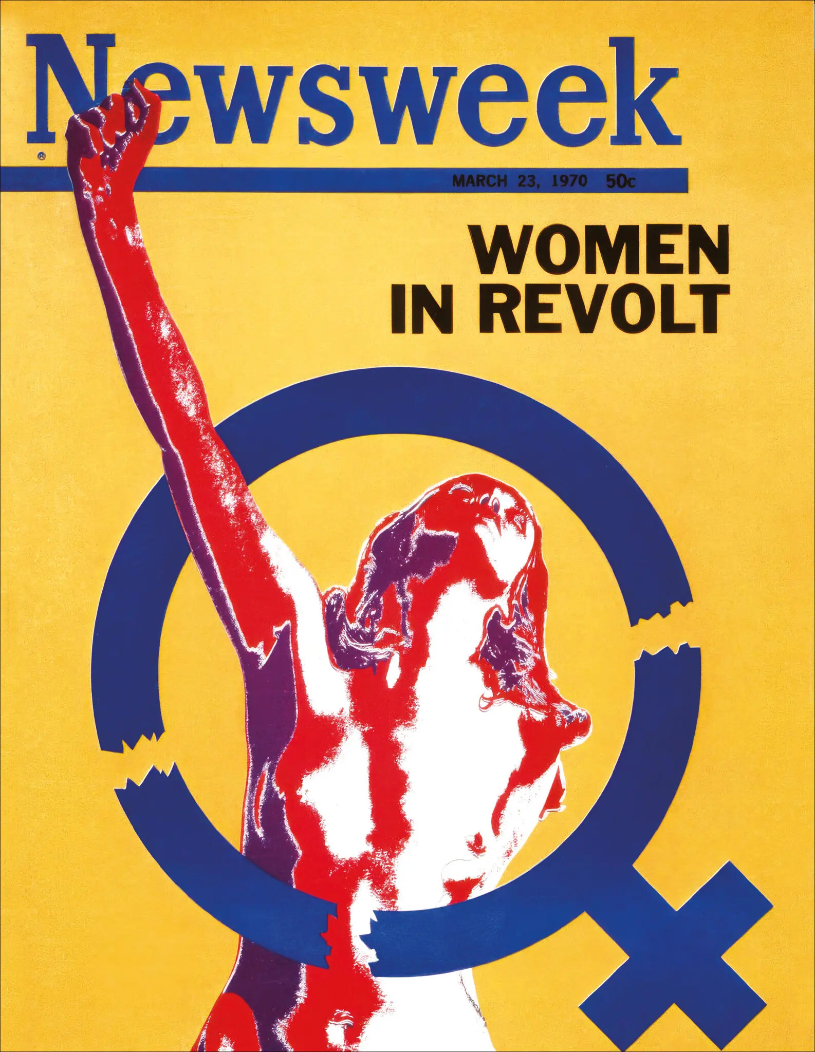 Το Μάρτιο του 1970, το Newsweek κυκλοφόρησε με εξώφυλλο μια γυναίκα σε κόκκινο φόντο, τη γροθιά της υψωμένη να σπάει το σύμβολο της Αφροδίτης, και τίτλο «Women in Revolt». Την ίδια μέρα, 46 γυναίκες υπάλληλοι του περιοδικού ανακοίνωσαν αγωγή για διάκριση φύλου, αφού επί χρόνια περιορίζονταν σε ρόλους γραμματέων και «κοριτσιών του ταχυδρομείου», ενώ οι άνδρες ήταν συντάκτες και αρχισυντάκτες. Η υπόθεση –στην οποία πρωταγωνίστησε η δικηγόρος Έλινορ Χολμς Νόρτον– έγινε ορόσημο για τον φεμινισμό μέσα στον Τύπο και άνοιξε τον δρόμο για αντίστοιχες διεκδικήσεις σε Time Inc., Reader’s Digest, New York Times και άλλα μέσα. Το εξώφυλλο έμεινε έτσι συνδεδεμένο όχι μόνο με το γυναικείο κίνημα αλλά και με μια πραγματική «επανάσταση» μέσα στο ίδιο το περιοδικό.
