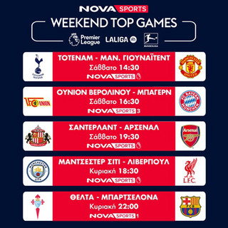 Πανδαισία ποδοσφαίρου από τα γήπεδα της Ελλάδας και της Ευρώπης, περιμένει τους συνδρομητές της Nova και αυτή την εβδομάδα μέσα από το ασυναγώνιστο μπουκέτο αθλητικού περιεχομένου που περιλαμβάνει όλα τα αθλητικά γεγονότα των καναλιών Novasports και Cosmote Sport, όλα στην πλατφόρμα EON!