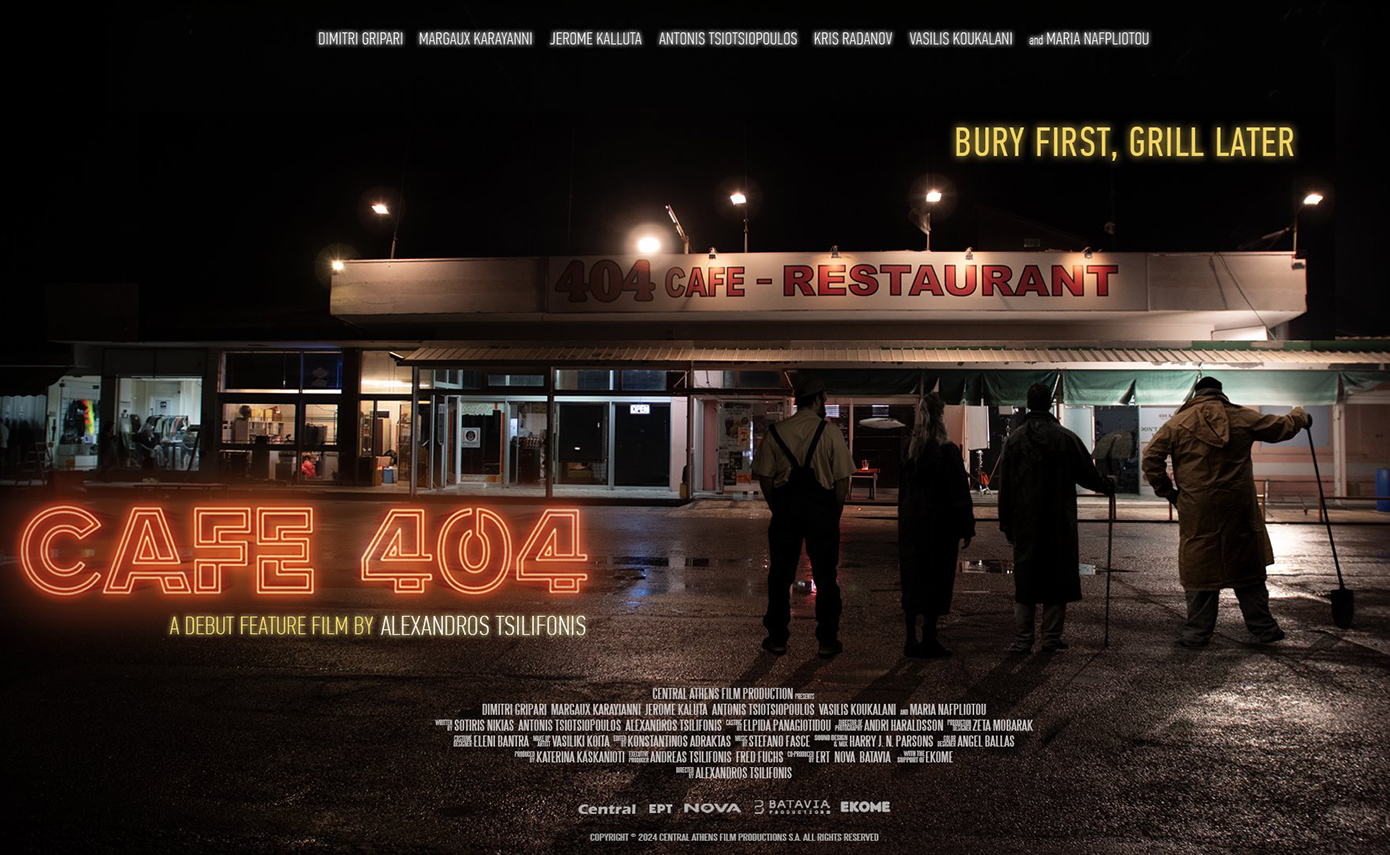 Το «CAFÉ 404» που έκανε πρεμιέρα τον Σεπτέμβριο στις κινηματογραφικές αίθουσες, είναι μία σύγχρονη dark comedy που μας μεταφέρει σε ένα παλιό καφέ σε ερημωμένο παράδρομο της Εθνικής Οδού, όπου ο Τζίμι παλεύει να σώσει την οικογενειακή του επιχείρηση από τη χρεοκοπία. Η ιστορία ξεκινά όταν μια αποτυχημένη ανταλλαγή ναρκωτικών αφήνει πίσω της μια τσάντα γεμάτη μετρητά, βάζοντας τον Τζίμι και τους τρεις εκκεντρικούς υπαλλήλους του CAFE 404 σε έναν αγώνα επιβίωσης και ανατροπών. Καθώς η νύχτα προχωρά, οι ήρωες έρχονται αντιμέτωποι με την αστυνομία, τοπικούς κακοποιούς και απροσδόκητους ταξιδιώτες, ενώ οι σχέσεις τους δοκιμάζονται και οι αλήθειες αποκαλύπτονται.