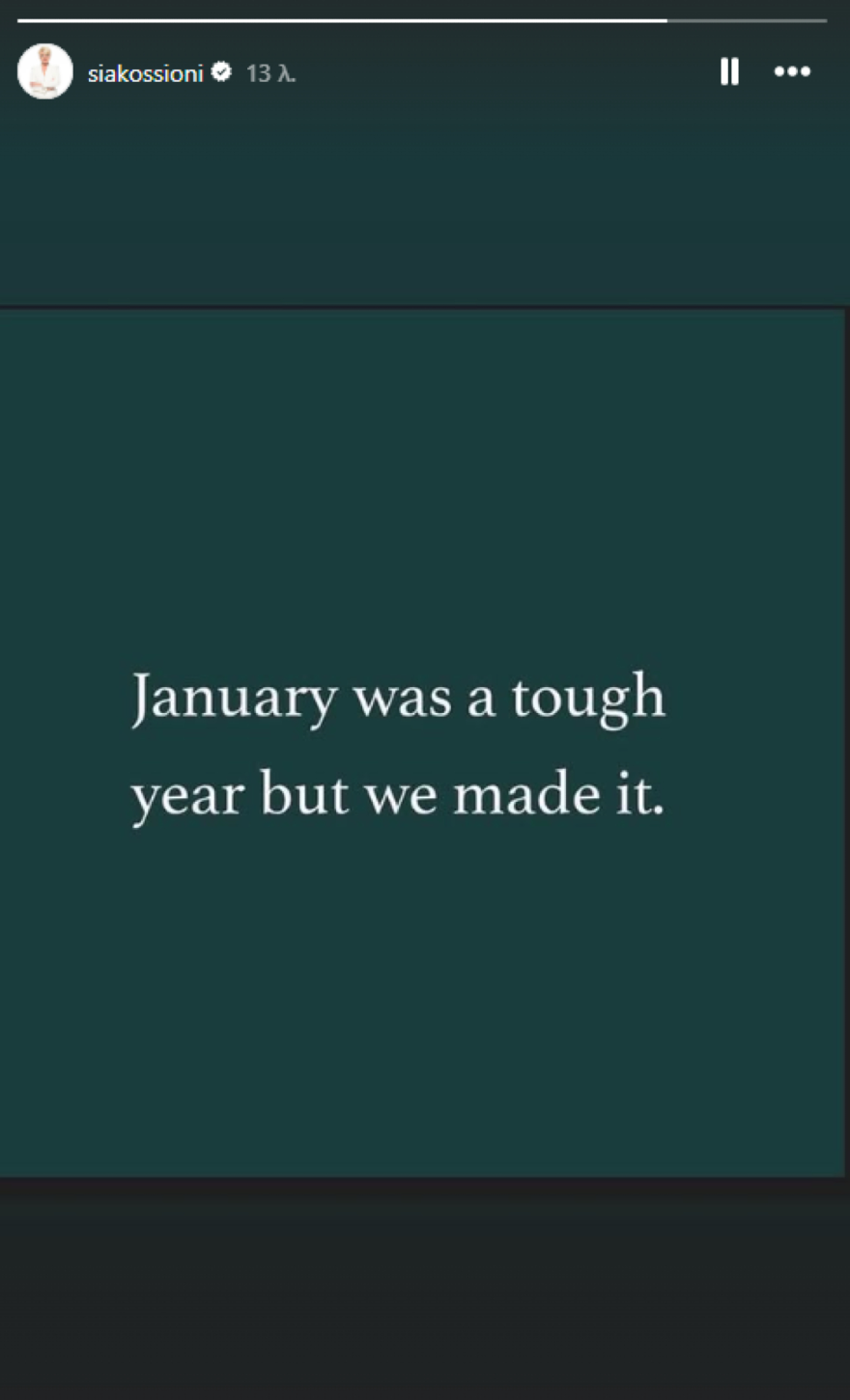 Εν αναμονή των αποτελεσμάτων των εξετάσεών της, η δημοσιογράφος το μεσημέρι της Κυριακής (1/2) έκανε μια ανάρτηση στον λογαριασμό της στο Instagram, στην οποία έγραψε χαρακτηριστικά: «Ο Ιανουάριος ήταν μία δύσκολη χρονιά, αλλά τα καταφέραμε».