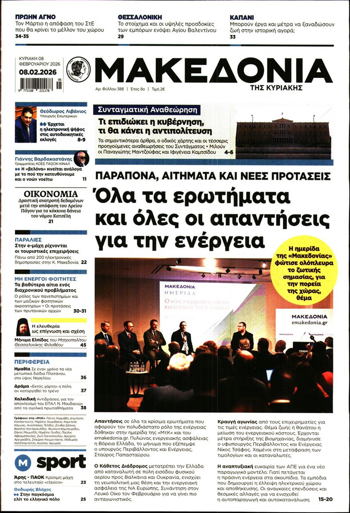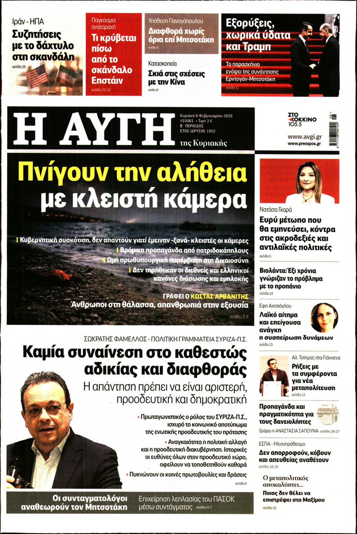 Η αναθεώρηση του Συντάγματος με φόντο τις επερχόμενες κάλπες, ο τρόπος που θα παραπέμπονται οι υπουργοί, το θρίλερ με τον Σμήναρχο που έδινε μυστικά στην Κίνα, η συνάντηση Μητσοτάκη-Ερντογάν, αλλά και οι «μεγάλες δουλειές» στη ΓΣΕΕ, ξεχωρίζουν στα πρωτοσέλιδα των κυριακάτικων εφημερίδων.