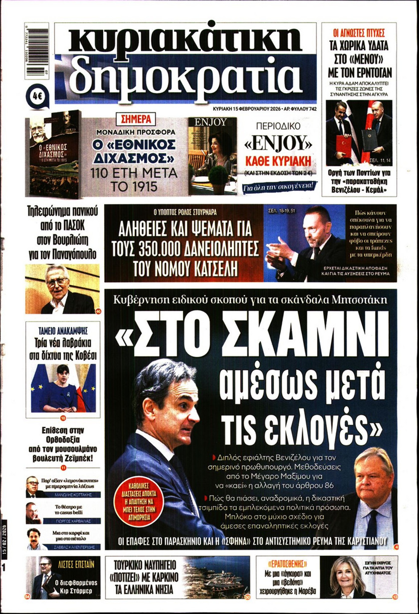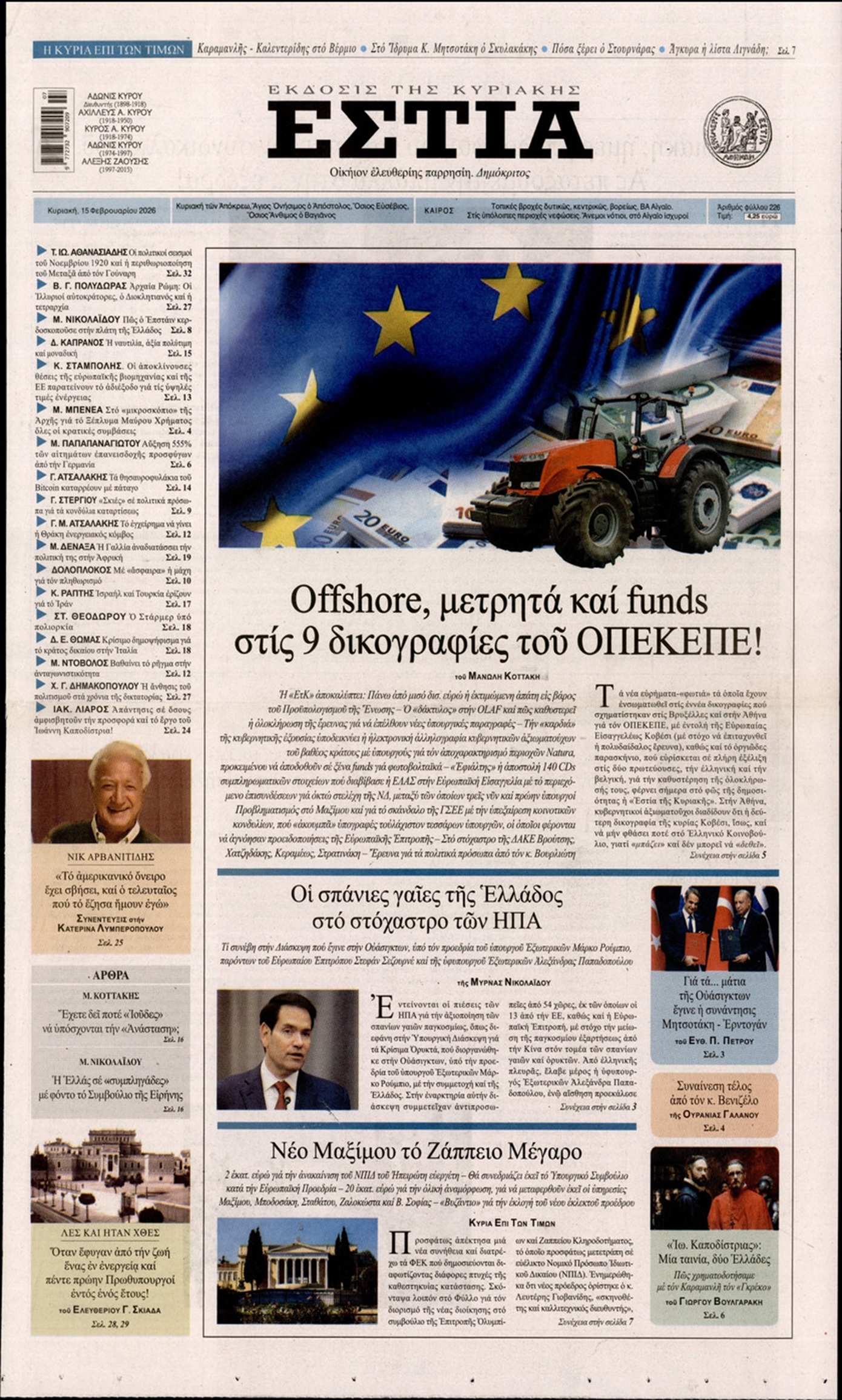 Η υπόθεση του Χρήστου Παναγόπουλου, η εμπλοκή Τραμπ στις Ελληνοτουρκικές σχέσεις και οι ξεκάθαροι όροι που έθεσε ο πρωθυπουργός στην Άγκυρα, τα ψηφιακά ένσημα και σύνταξη σε μία ημέρα από το 2022 ξεχωρίζουν στα πρωτοσέλιδα των κυριακάτικων εφημερίδων.