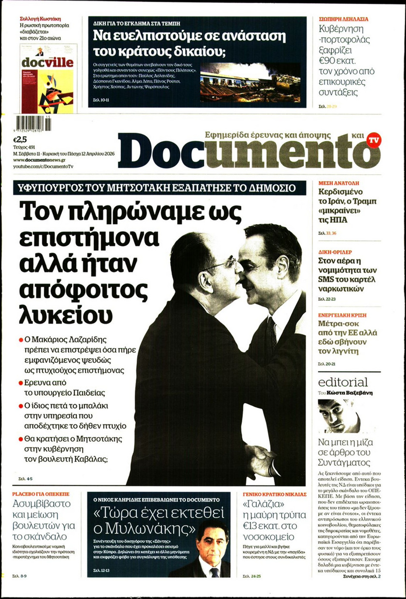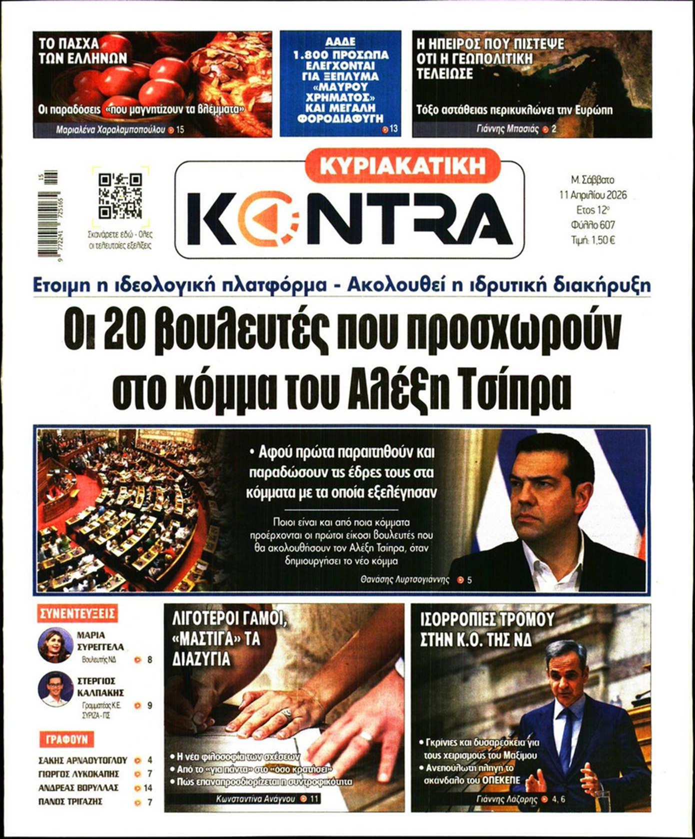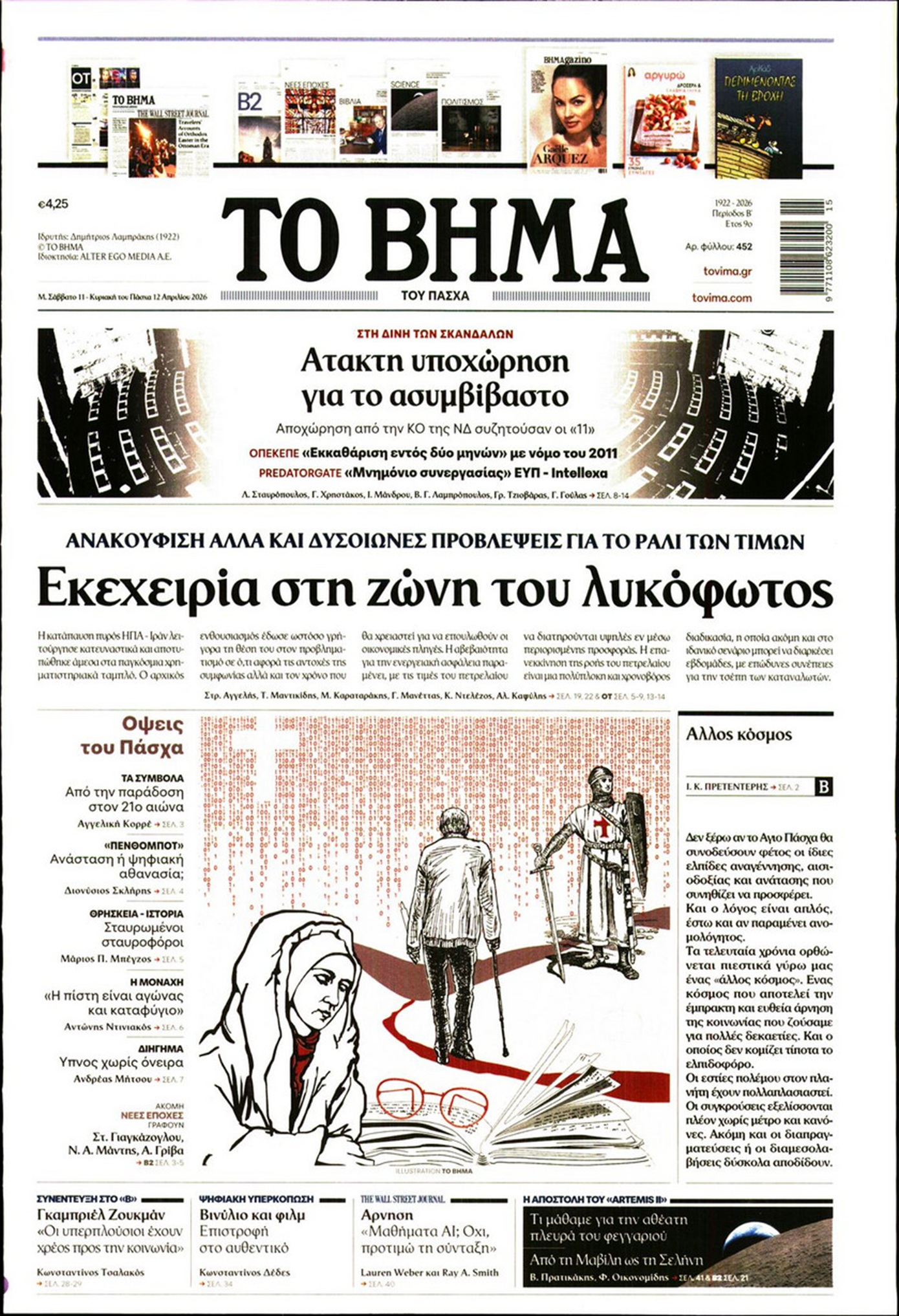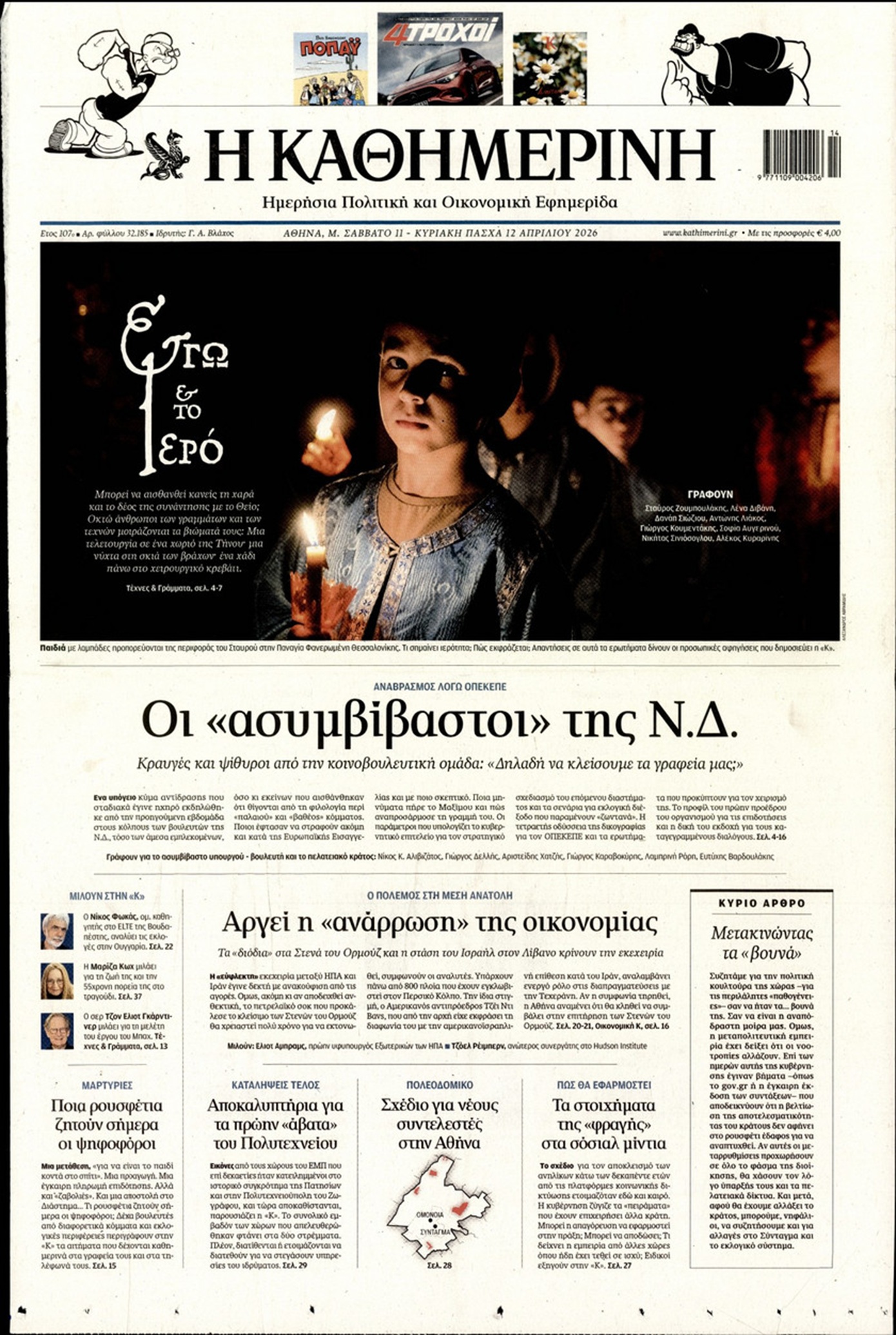 Οι «ασυμβίβαστοι» της Νέας Δημοκρατίας, το παζλ για τα γαλάζια ψηφοδέλτια, η προετοιμασία για κάλπες από το φθινόπωρο και μετά, η μετακόμιση των βάσεων των ΗΠΑ στην Ελλάδα, αλλά και η εκεχειρία στον πόλεμο ΗΠΑ με Ιράν κυριαρχούν στα πρωτοσέλιδα των κυριακάτικων εφημερίδων που λόγω Πάσχα κυκλοφορούν Μεγάλο Σάββατο.