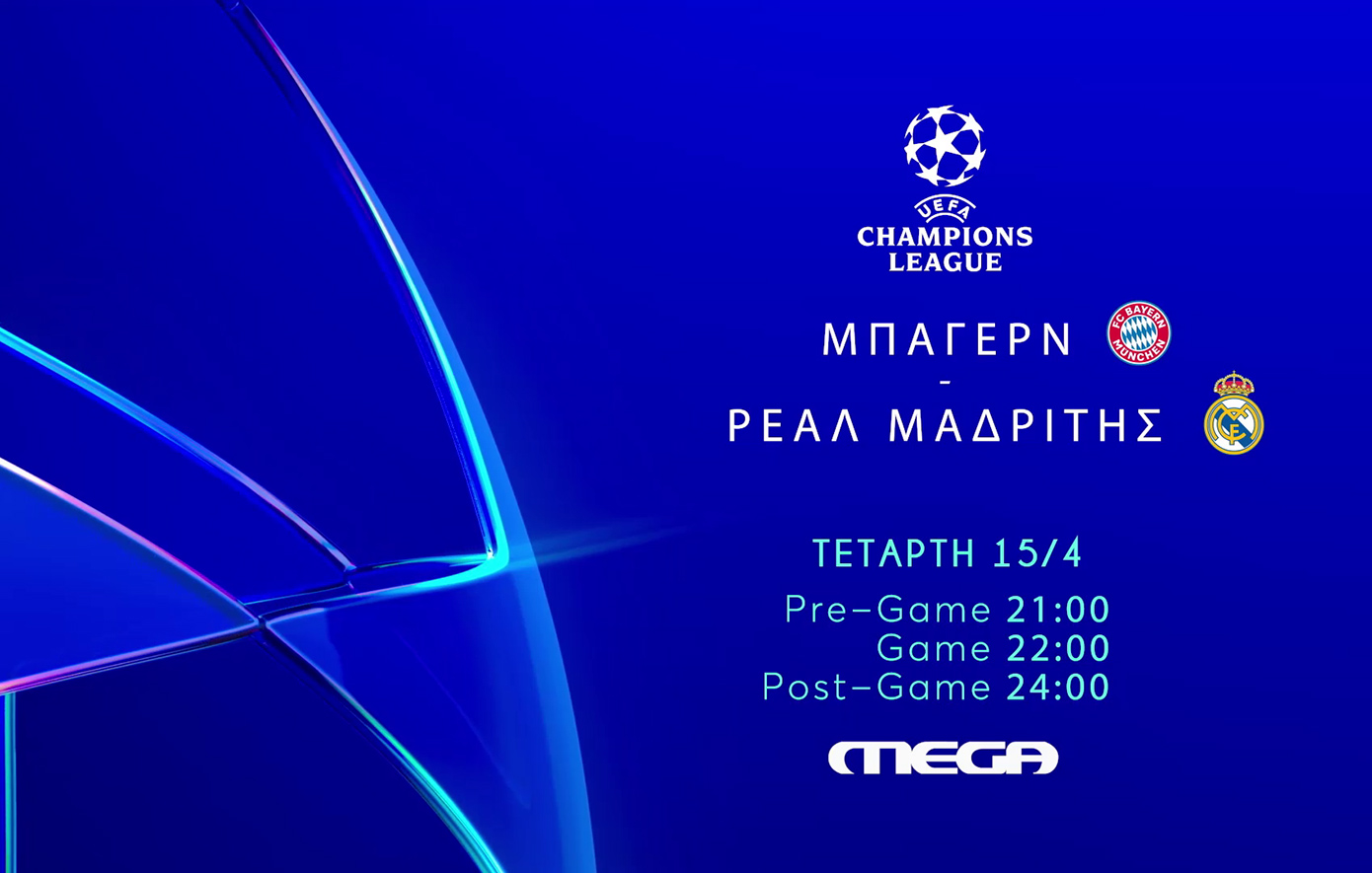 Μια ακόμη συναρπαστική ευρωπαϊκή μάχη συγκεντρώνει τα βλέμματα στη φάση των «8» του UEFA Champions League. Το MEGA μεταδίδει ζωντανά τη μεγάλη ρεβάνς ανάμεσα στην Μπάγερν Μονάχου και τη Ρεάλ Μαδρίτης, αύριο στις 22:00, με φόντο το πολυπόθητο εισιτήριο για τα ημιτελικά της διοργάνωσης.