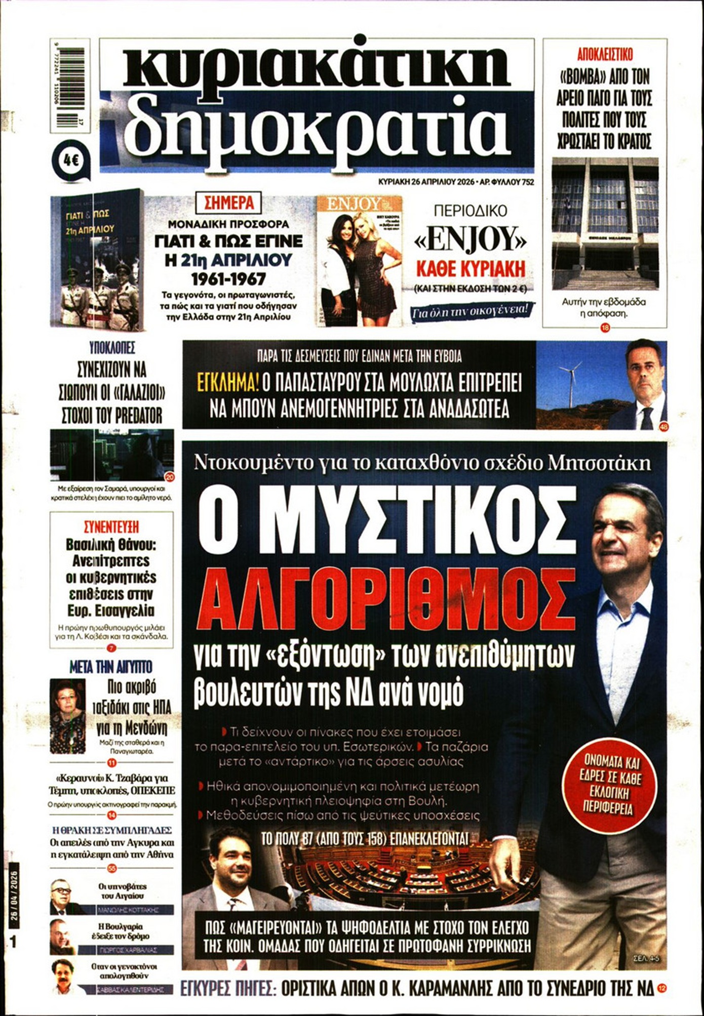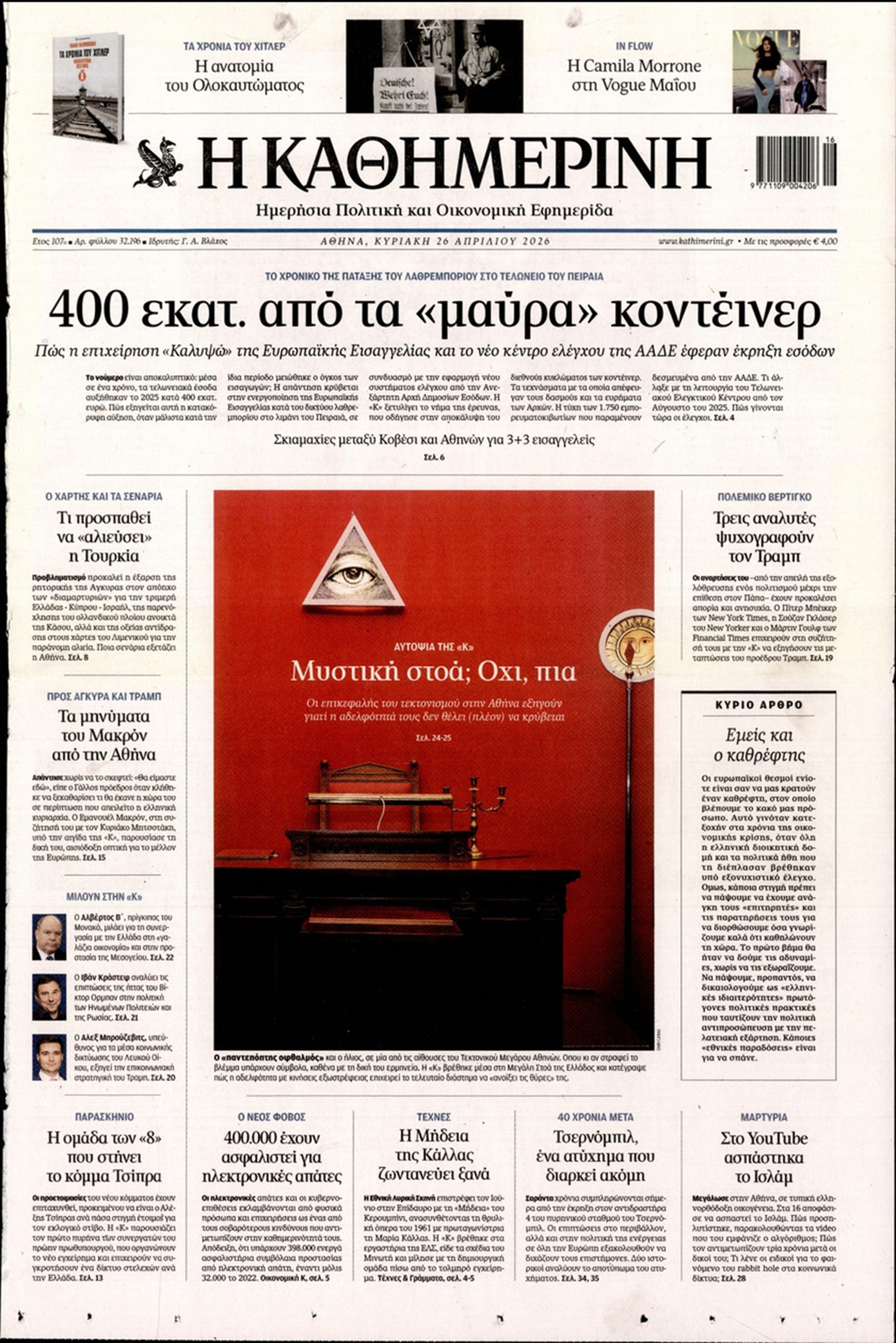 Το χρονικό της πάταξης του λαθρεμπορίου και τα 400 εκατ. από τα «μαύρα» κοντέινερ που έφεραν αύξηση εσόδων, τι προβλέπει το νέο νομοσχέδιο του Υπουργείου Ανάπτυξης για πλαφόν χρεώσεων σε δάνεια και κάρτες, αλλά και η αλλαγή του πολιτικού σκηνικού με την παρουσία των κομμάτων του Αλέξη Τσίπρα και της Μαρίας Καρυστιανού κυριαρχούν στα πρωτοσέλιδα των κυριακάτικων εφημερίδων.
