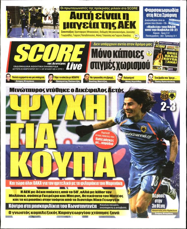 Το σημερινό φύλλο του «Score» είναι το τελευταίο καθώς, όπως είχε ανακοινωθεί από την Παρασκευή το βράδυ στους εργαζόμενους, η εφημερίδα αναστέλλει την κυκλοφορία της.