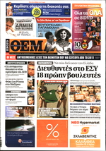 MEDIA Οι εφημερίδες της Κυριακής 11 Ιουλίου Δείτε όλα τα εξώφυλλα 11·07·2010 00:45 Κάντε κλικ στα εξώφυλλα για να τα δείτε σε μεγάλο μέγεθος
