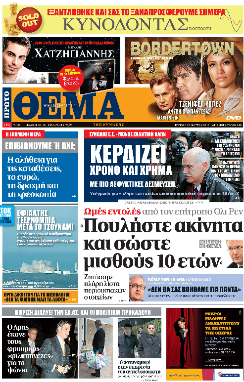 Μαζί με την κυριακάτικη έκδοση η ταινία «Bordertown» με τους Τζένιφερ Λόπεζ, Αντόνιο Μπαντέρας και Μάρτιν Σιν.