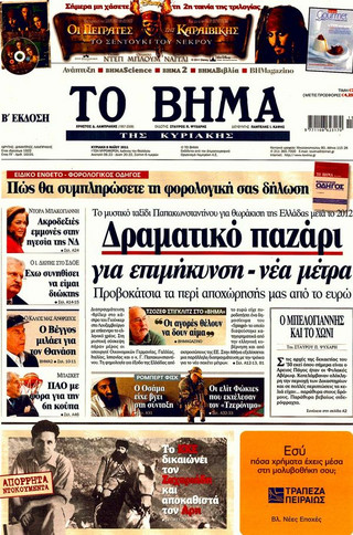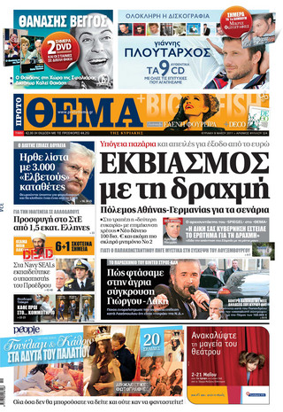 Το θέμα της συνάντησης των υπουργών Οικονομικών στο Λουξεμβούργο βρίσκεται στο επίκεντρο των Κυριακάτικων εφημερίδων, που κάνουν αναφορά στα σενάρια για έξοδο της Ελλάδας από την Ευρωζώνη.