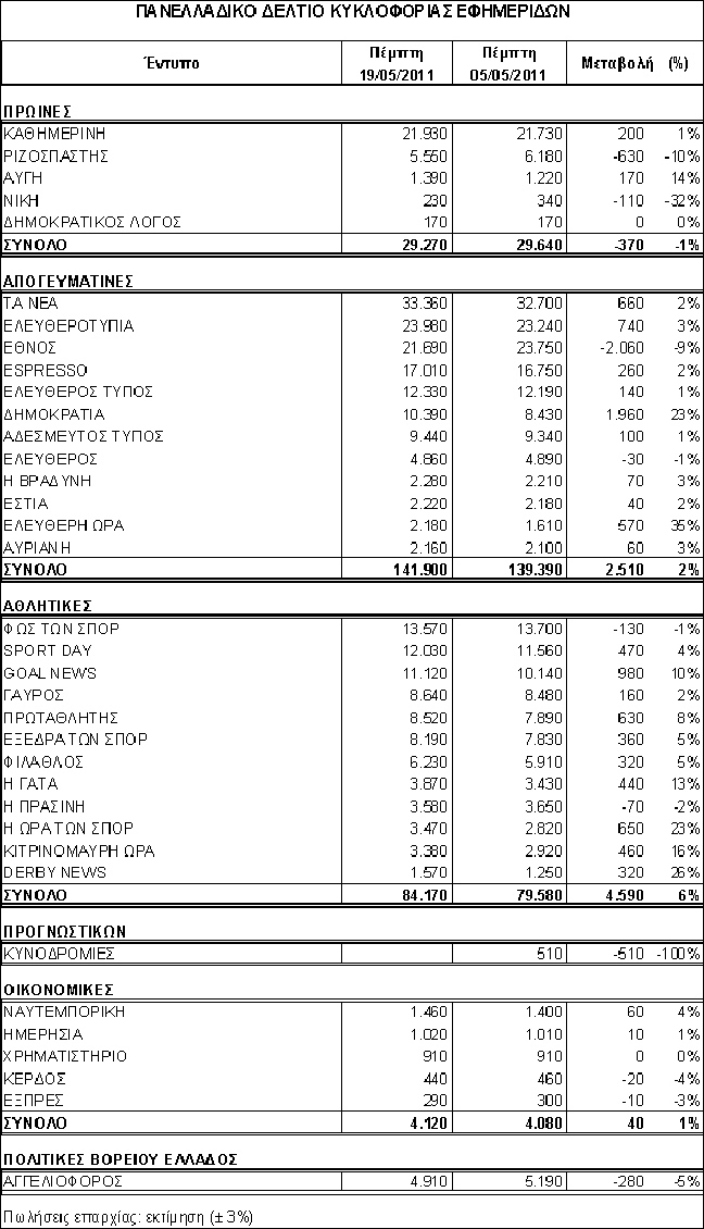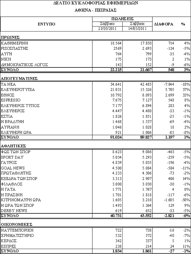 Στα ίδια επίπεδα, με μια μικρή άνοδο, με τις πωλήσεις του προηγούμενου Σαββάτου κινήθηκαν οι εφημερίδες σε Αθήνα και Πειραιά. Δείτε αναλυτικά…