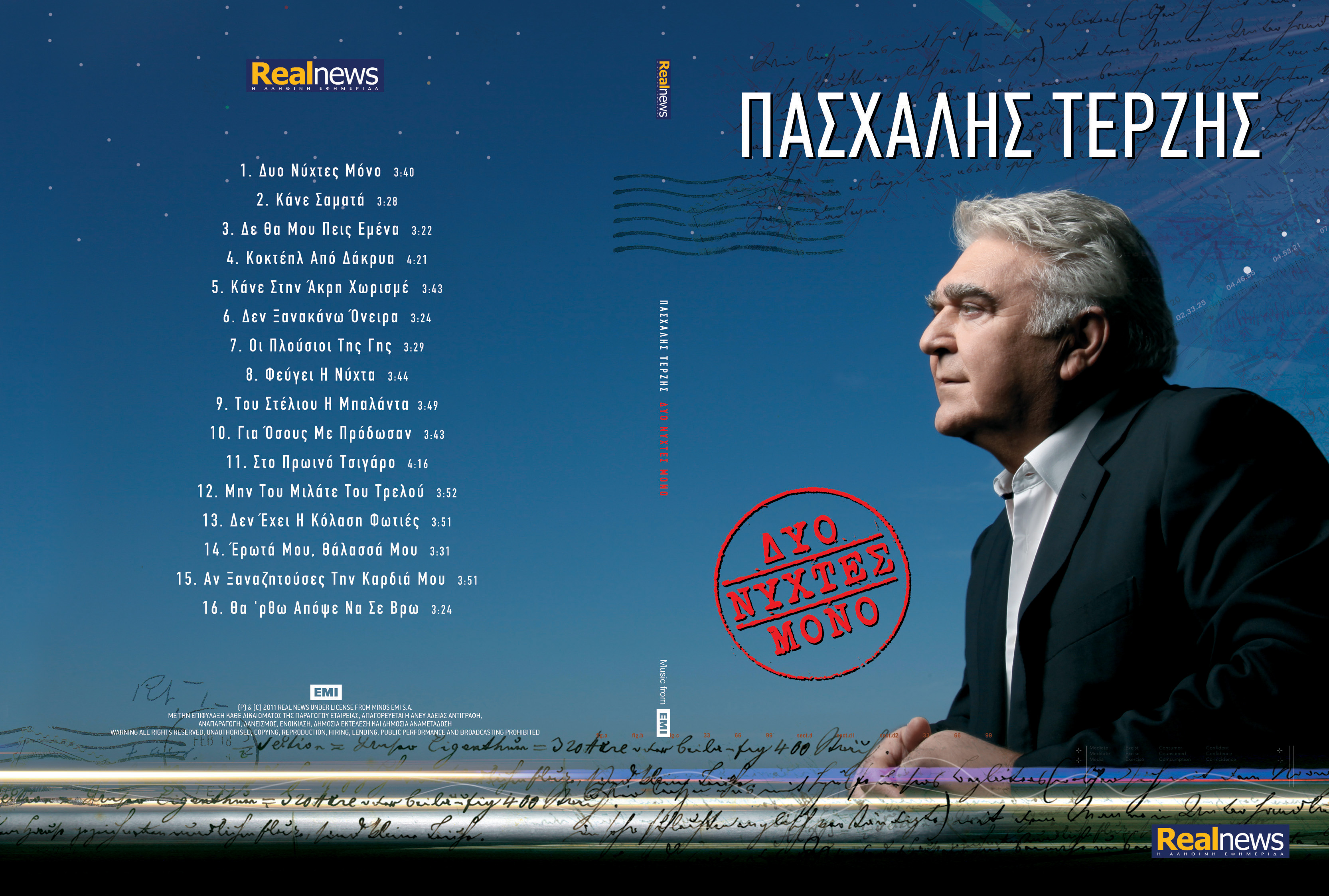 Αυτή την Κυριακή με τη Real News, μη χάσετε το νέο CD του Πασχάλη Τερζή, με 16 ολοκαίνουργια τραγούδια.