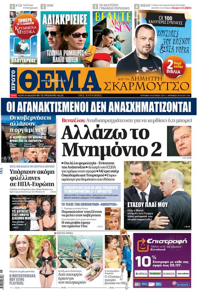 Αυτή την Κυριακή με το «Πρώτο Θέμα» το 7ο άλμπουμ της συλλογής του Γιάννη Πλούταρχου «Κρυμμένα Μυστικά». Με την κυριακάτικη έκδοση και η ταινία «Αδιακρισίες» με τη Τζούλια Ρόμπερτς και τον Κλάιβ Όουεν.