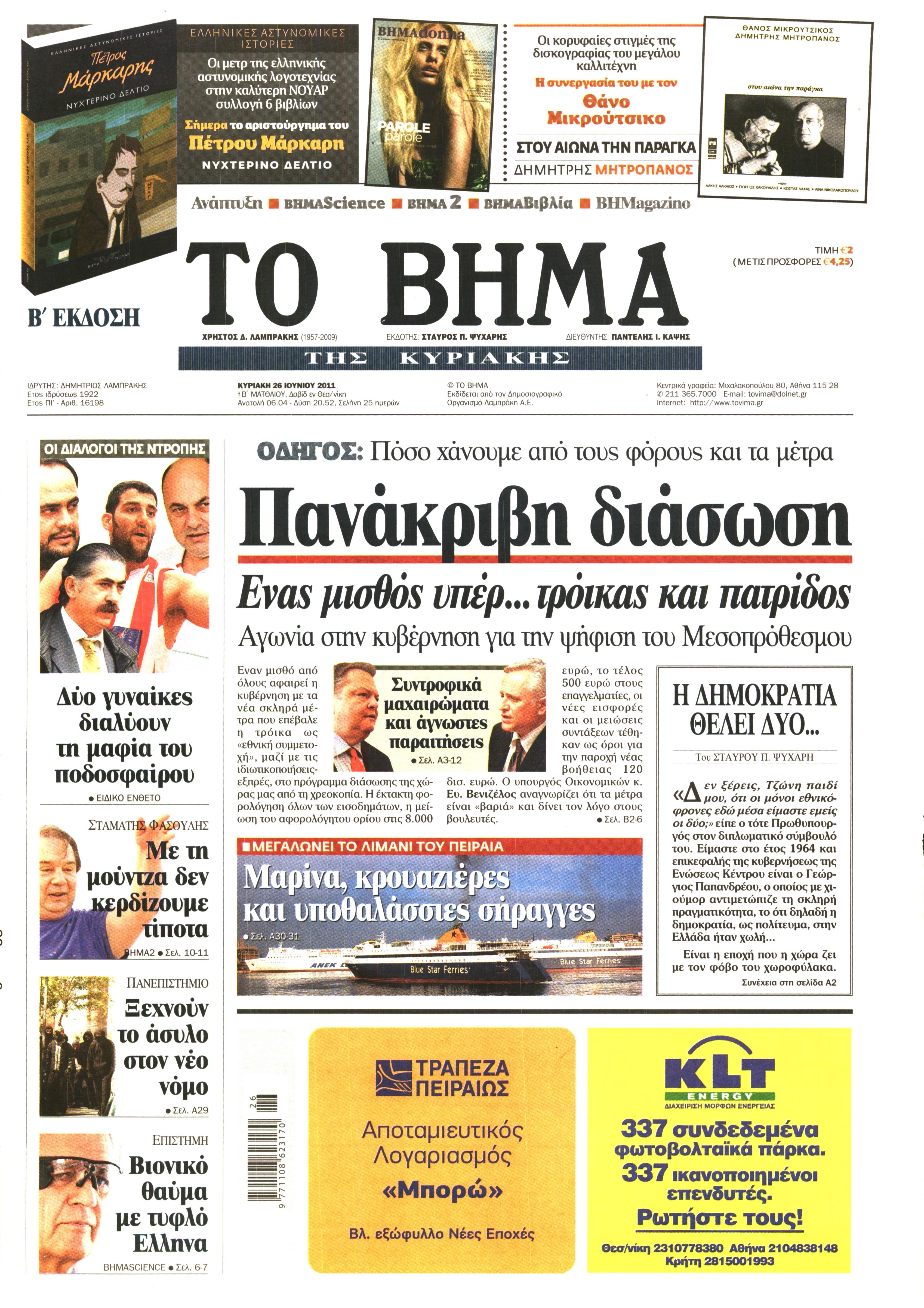 Στα μέτρα του μεσοπρόθεσμου, την άρση του τραπεζικού απορρήτου αλλά και το σκάνδαλο με τους στημένους αγώνες ποδοσφαίρου αναφέρονται στα πρωτοσέλιδα τους οι εφημερίδες της Κυριακής.