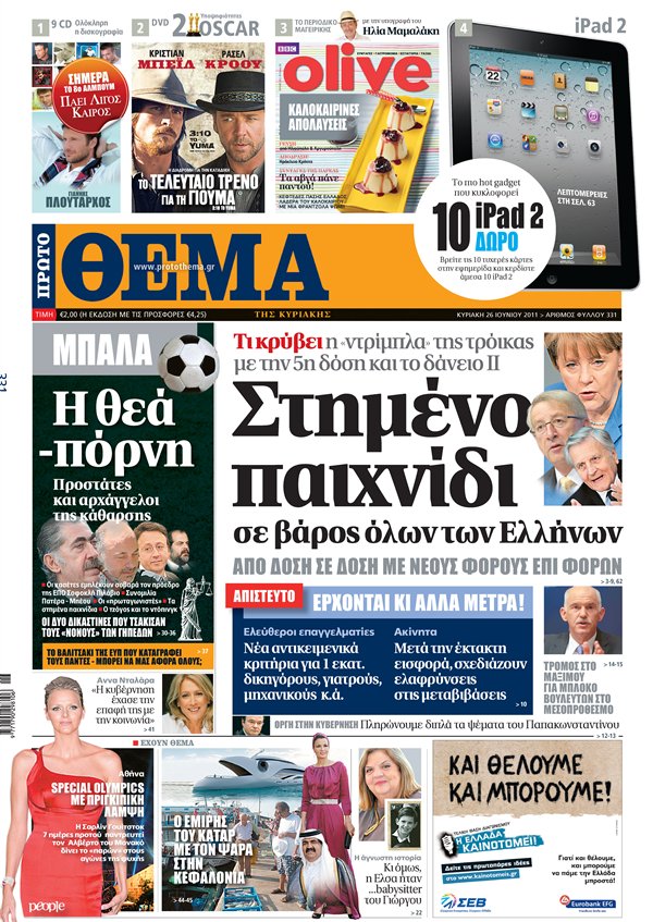 Επίσης, η πρώτη ελληνική εφημερίδα που βγήκε στο iPad, σας κάνει δώρο 10 ολοκαίνουρια iPad 2, για να ζήσετε την απόλυτη εμπειρία της αγαπημένης σας εφημερίδας.