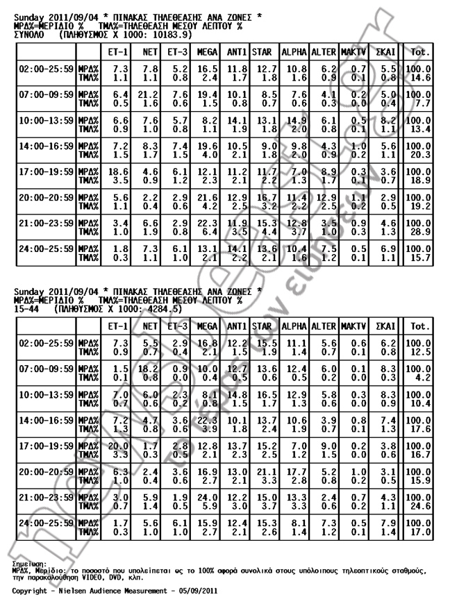 Δείτε πώς διαμορφώθηκε το τηλεοπτικό τοπίο των αγαπημένων σας προγραμμάτων την Κυριακή 4 Σεπτεμβρίου.