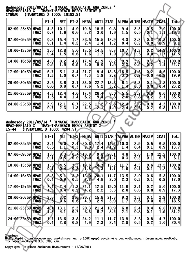 Δείτε πώς διαμορφώθηκε το τηλεοπτικό τοπίο των αγαπημένων σας προγραμμάτων την Τετάρτη 14 Σεπτεμβρίου.