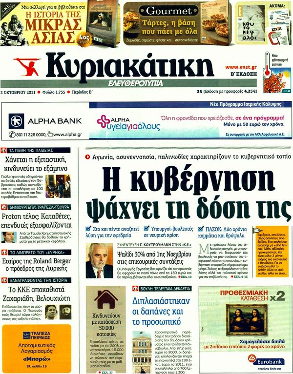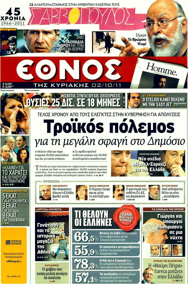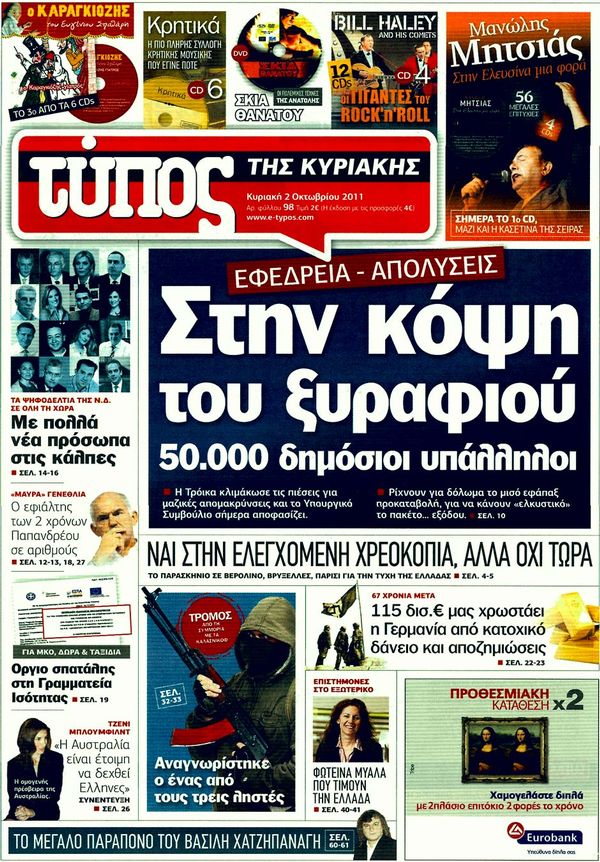 Οι διαπραγματεύσεις με την τρόικα, η 6η δόση και η λύση για την εφεδρεία βρίσκονται στο επίκεντρο των πρωτοσέλιδων του κυριακάτικου Τύπου.