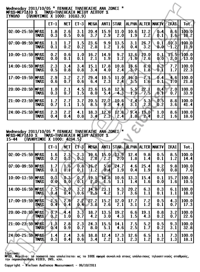 Δείτε πώς διαμορφώθηκε το τηλεοπτικό τοπίο των αγαπημένων σας προγραμμάτων την Τετάρτη 5 Οκτωβρίου: