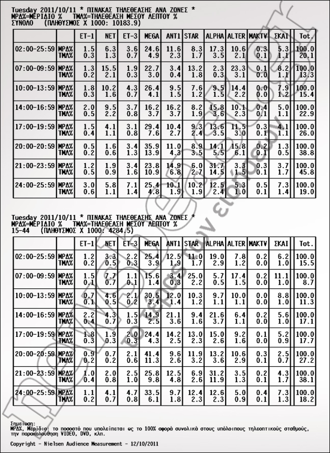 Δείτε πώς διαμορφώθηκε το τηλεοπτικό τοπίο των αγαπημένων σας προγραμμάτων την Τρίτη 11 Οκτωβρίου: