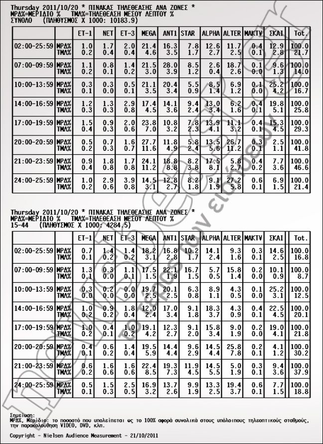 Πρωτιά για το ALTER με 25,8%. Ακολούθησαν MEGA με 19,5% και ANT1 με 14,4%