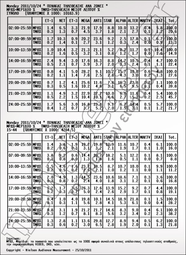Με 25,6% βγήκε πρώτο χθες το δελτίο ειδήσεων του MEGA αφήνοντας πίσω του το ALTER με 23,8% και τον ANT1 με 11,6%