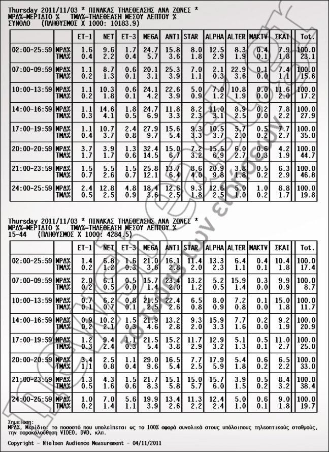 Νικητής στα δελτία ειδήσεων το MEGA με 29%. Στη δεύτερη θέση ο ANT1 με 16,5% και το STAR με 7,7%