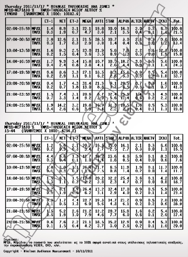Δείτε πώς διαμορφώθηκε το τηλεοπτικό τοπίο των αγαπημένων σας προγραμμάτων την Πέμπτη 17 Νοεμβρίου: