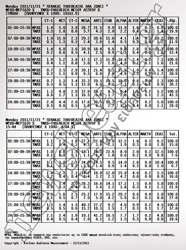 Με 33,3% βγήκε πρώτο το δελτίο του MEGA. Στη δεύτερη θέση ΑΝΤ1 με 20,5% και στην τρίτη STAR με 10,5%