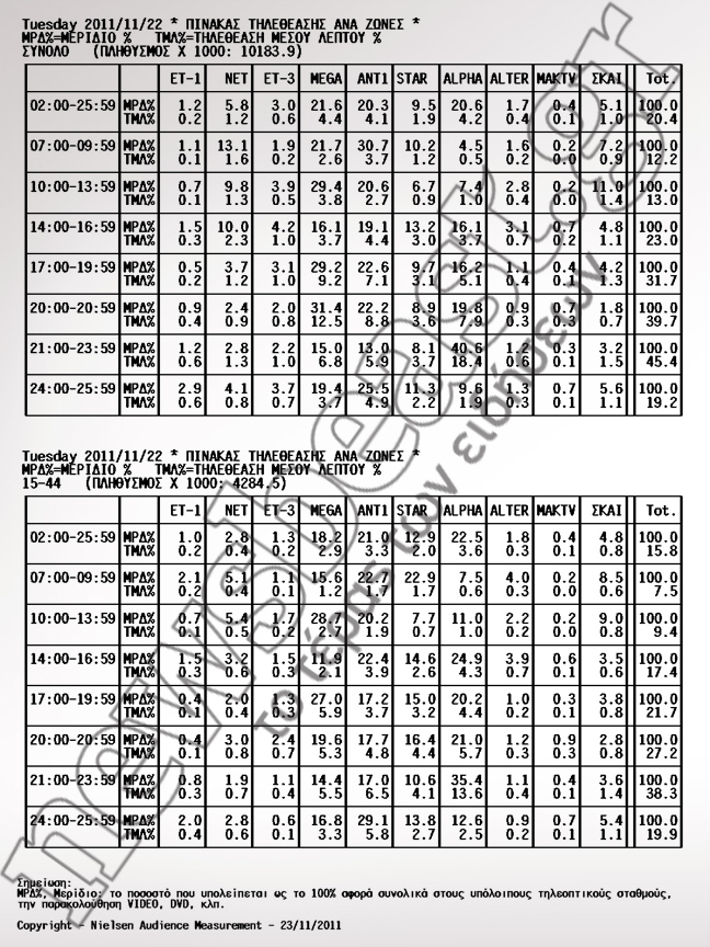 Δείτε πώς διαμορφώθηκε το τηλεοπτικό τοπίο των αγαπημένων σας προγραμμάτων την Τρίτη 22 Νοεμβρίου: