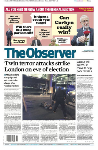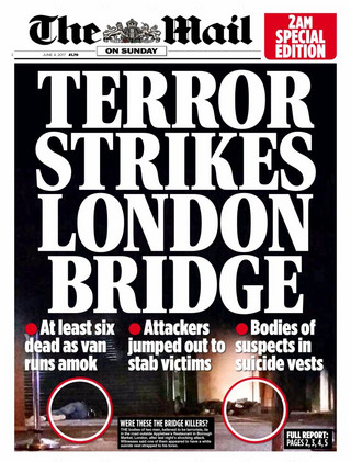 Με τις λέξεις «τρόμος» και «σφαγή» να κυριαρχούν κυκλοφορούν σήμερα οι βρετανικές εφημερίδες ενώ και στον διεθνή Τύπο αναφέρεται σε δραματικούς τόνους το τριπλό χτύπημα στο Λονδίνο που άφησε πίσω τους έξι πολίτες νεκρούς.