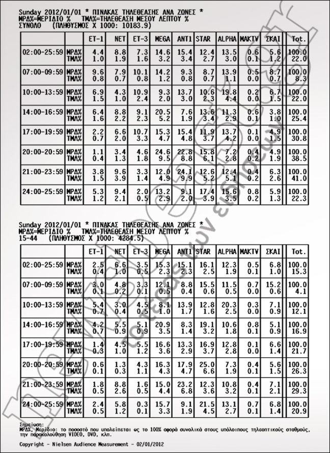 Δείτε πώς διαμορφώθηκε το τηλεοπτικό τοπίο των αγαπημένων σας προγραμμάτων την Κυριακή 1η Ιανουαρίου 2012: