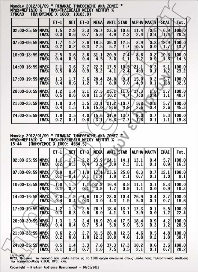 Νικητής στη «μάχη» της AGB βγήκε το MEGA με ποσοστό 27,5 % ακολούθησε ο ΑΝΤ1 με ποσοστό 25,1%, ενώ τρίτο στην κατάταξη είναι το STAR με 11,6%.