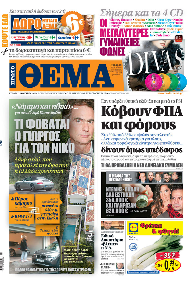 Μη χάσετε αύριο το «Πρώτο θέμα» με τα τέσσερα CD με τις μεγαλύτερες γυναικείες φωνές. Μαζί, μια δωροεπιταγή αξίας έξι ευρώ από τα καταστήματα Carrefour.