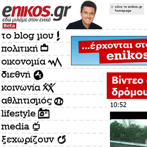 Προσδοκία του enikos.gr είναι να εξελιχθεί σε μία νέα διαδραστική σελίδα κοινωνικής δικτύωσης, βασισμένη στην ενημέρωση και την επικαιρότητα.