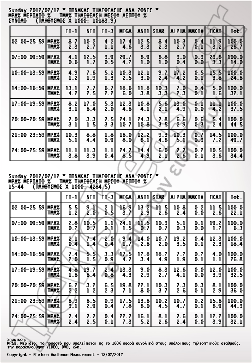 Δείτε πώς διαμορφώθηκε το τηλεοπτικό τοπίο των αγαπημένων σας προγραμμάτων την Κυριακή 12 Φεβρουαρίου: