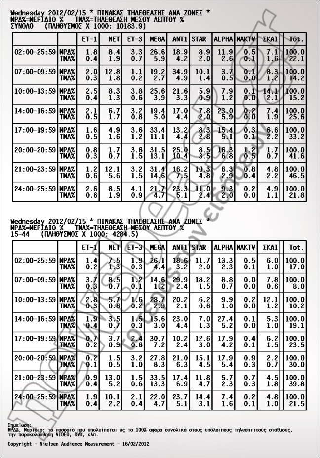 Το δελτίο του Mega προτίμησαν χθες οι τηλεθεατές, το οποίο συγκέντρωσε ποσοστό 31,5% έναντι 25% του ΑΝΤ1 και 8,5% του STAR.