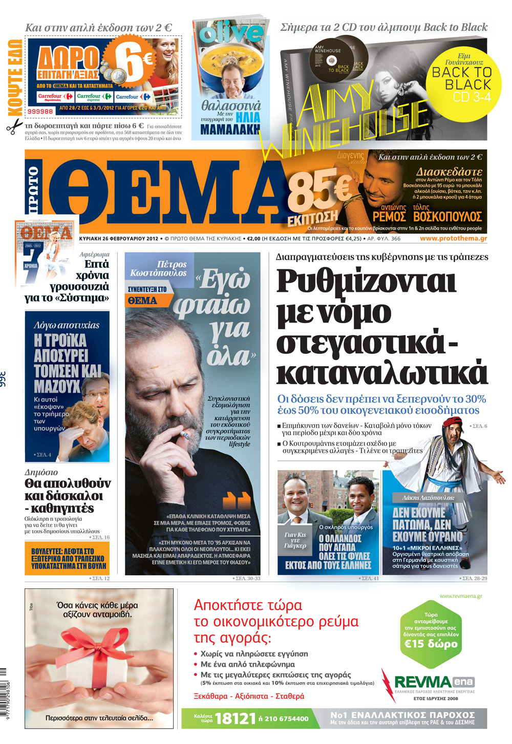 Μη χάσετε αύριο το «Πρώτο Θέμα» με τα δύο cd της Amy Winehouse. Μαζί το περιοδικό Olive με συνταγές για θαλασσινά, με την υπογραφή του Ηλία Μαμαλάκη.