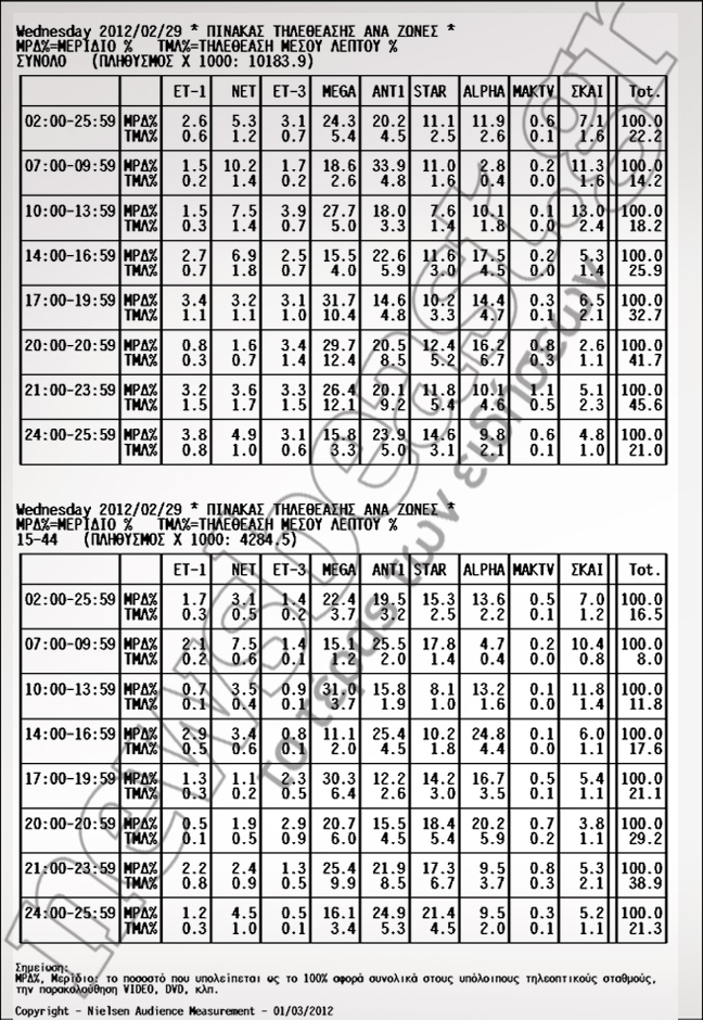Με 29,7% βγήκε πρώτο το δελτίο του Mega. Ακολούθησαν ΑΝΤ1 με 20,5% και STAR με 12,4%