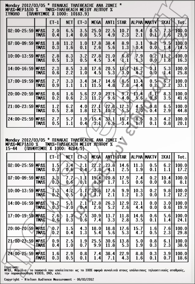 Δείτε πώς διαμορφώθηκε το τηλεοπτικό τοπίο των αγαπημένων σας προγραμμάτων τη Δευτέρα 5 Μαρτίου 2012: