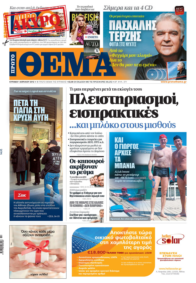 Μη χάσετε αύριο το «Πρώτο θέμα» με τα τέσσερα CD με τις μεγαλύτερες επιτυχίες του Πασχάλη Τερζή. Μαζί, το περιοδικό big fish με ένα ειδικό ένθετο αφιερωμένο στο αυτοκίνητο.