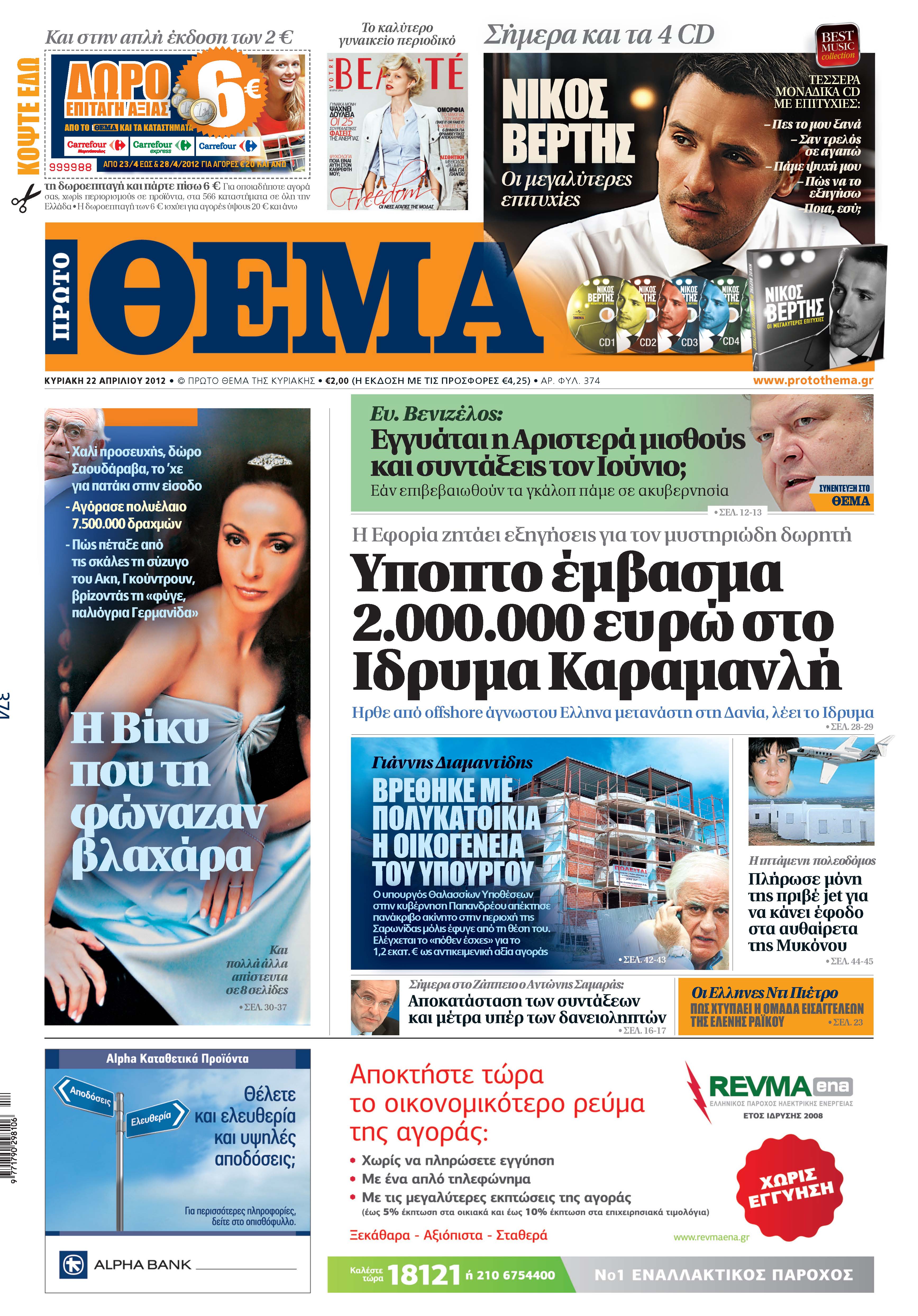 Μη χάσετε αύριο με το Πρώτο Θέμα τα τέσσερα CD με τις επιτυχίες του Νίκου Βέρτη. Μαζί μια δωροεπιιταγή αξίας 6 ευρώ από τα καταστήματα Carrefour.