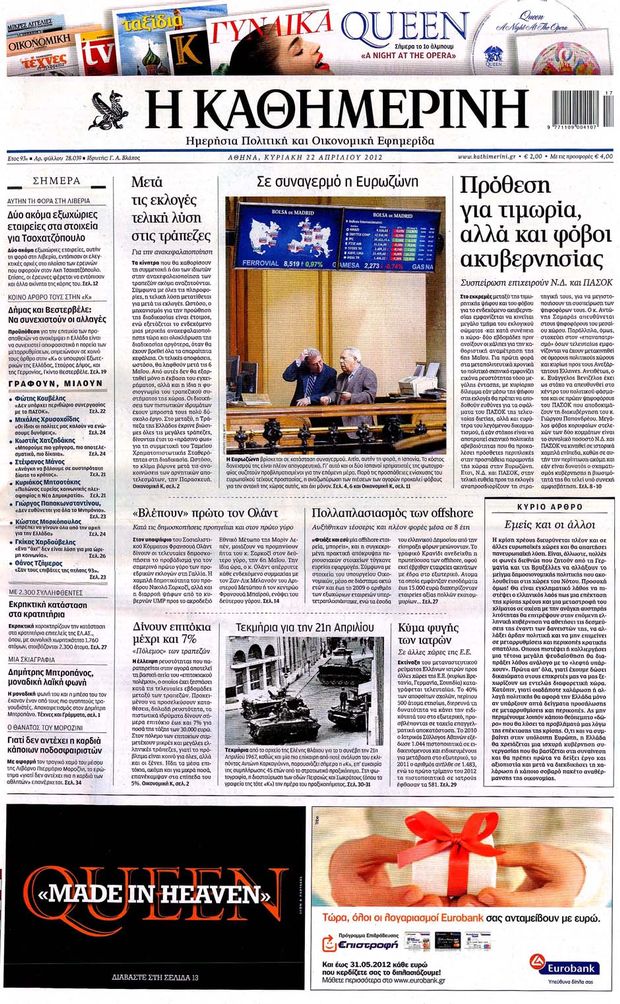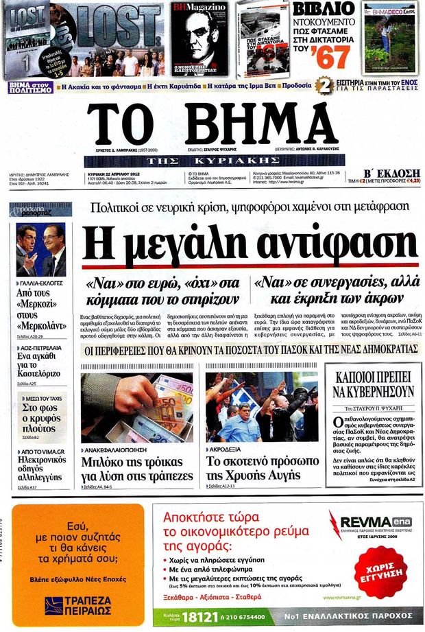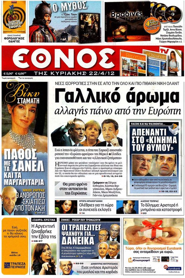 Για πολιτικούς σε νευρική κρίση και ψηφοφόρους χαμένους στη μετάφραση καθώς και για γαλλικό άρωμα αλλαγής πάνω από την Ευρώπη κάνουν λόγο μεταξύ άλλων στα πρωτοσέλιδα τους οι κυριακάτικες εφημερίδες.